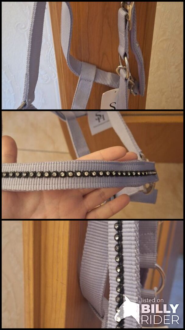 Glitter halter Showmaster - Selling a new halter in size COB. It is unused and still with label. Color: soft lilac/purple With sparkling rhinestones on the noseband and cheekpieces - a real eye-catcher ✨ Adjustable in the neck area. Sturdy silver-colored fittings. Ideal for the stable or competition - super chic and yet suitable for everyday use.