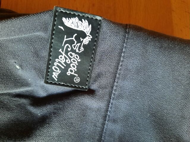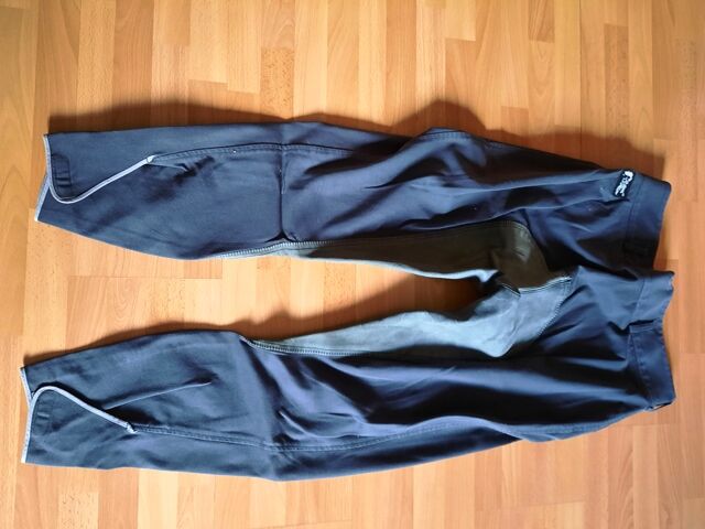 Good Fellow breeches size 44 - I have a pair of breeches, high waist, color anthracite / gray, size 44 with full seat made of genuine leather from the brand Good Fellow to give away. The front of the pants has two pockets with zipper. The pants are freshly washed and in good condition. The trousers have a tiny hole underneath the brand label, which has been sewn and is hardly visible. The leather is supple and soft.
