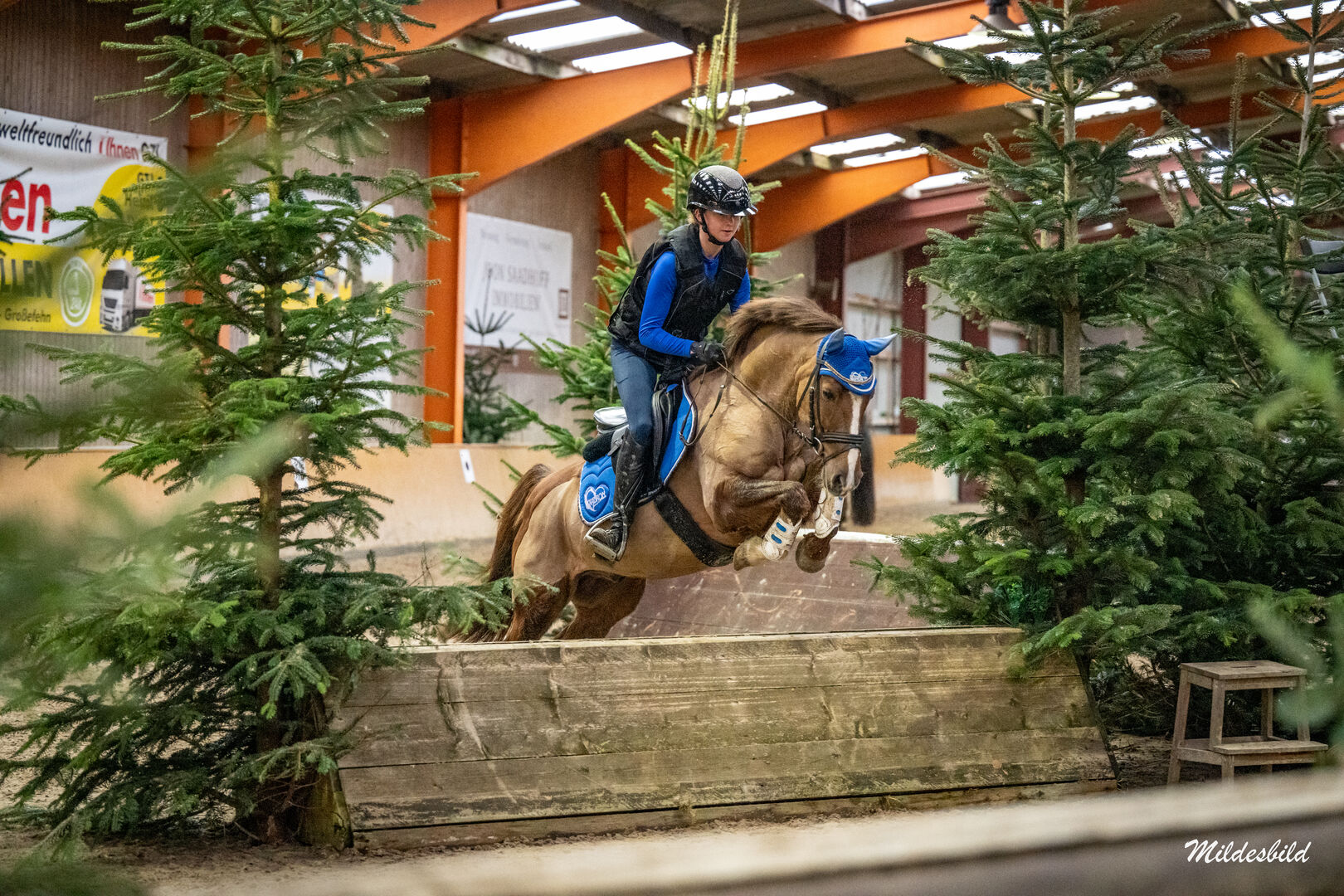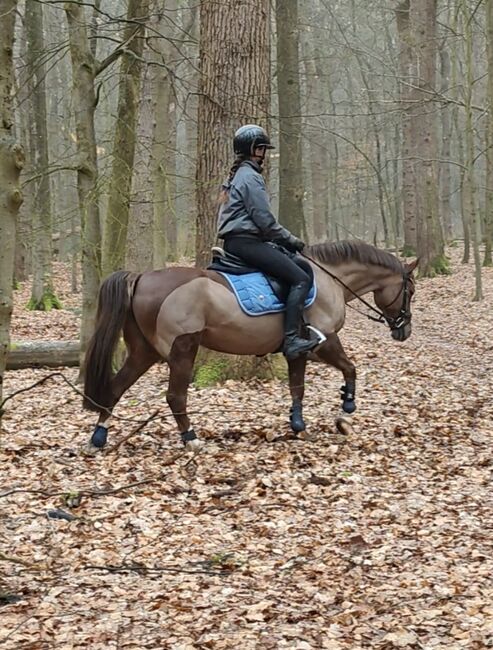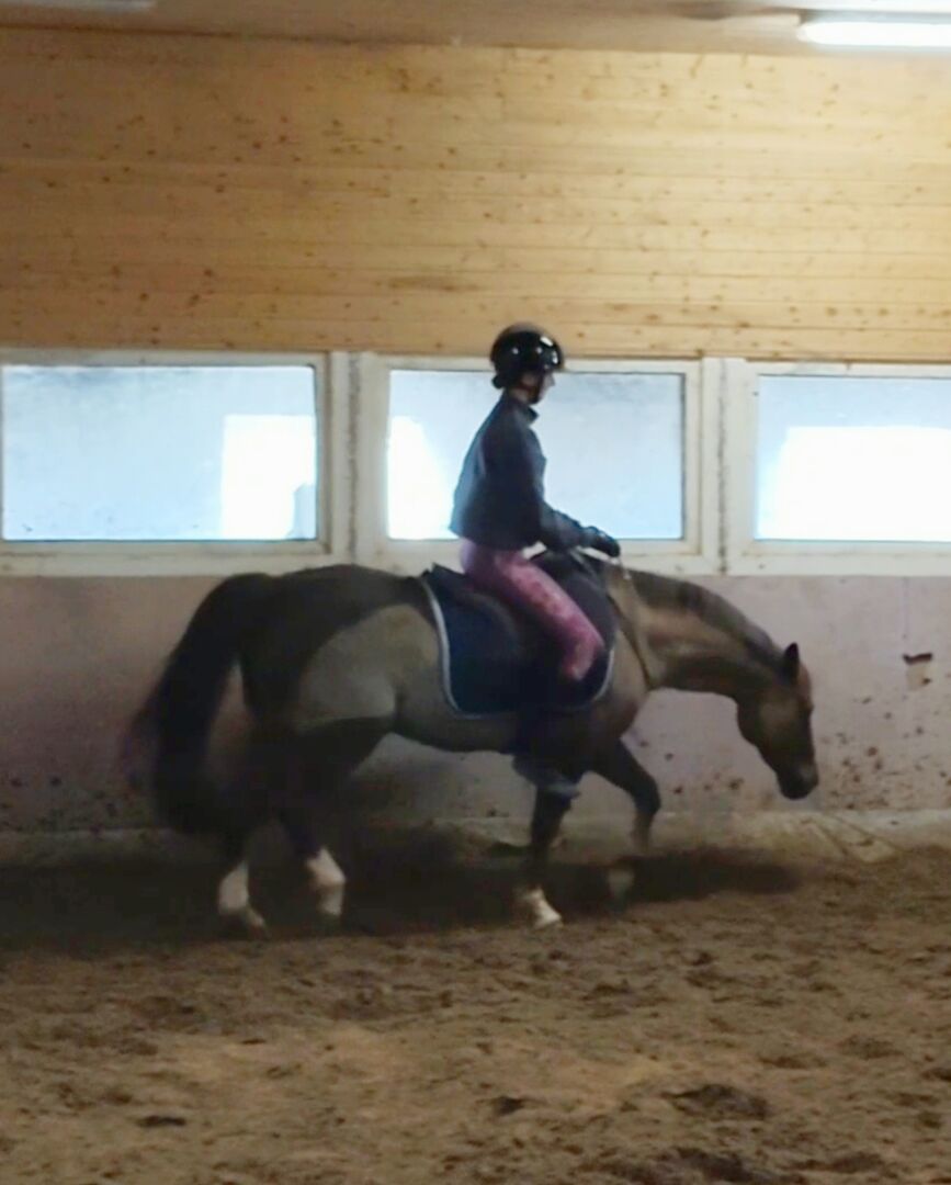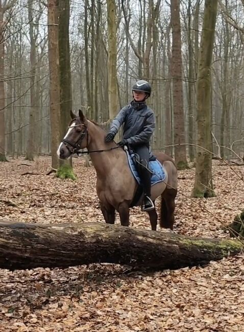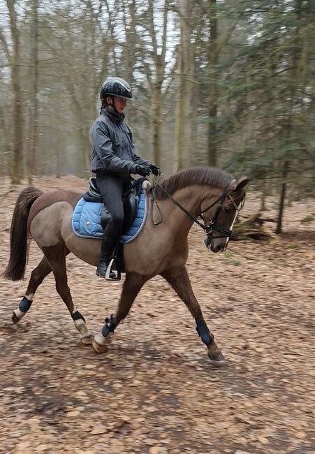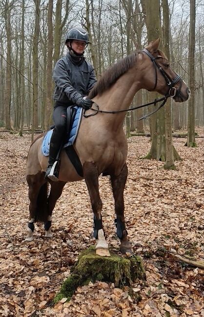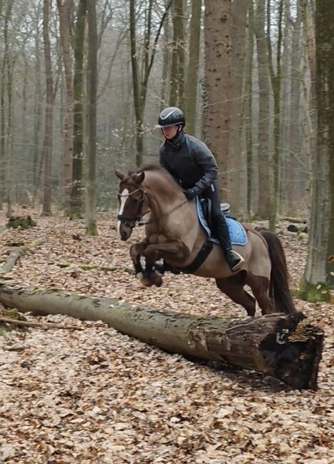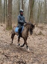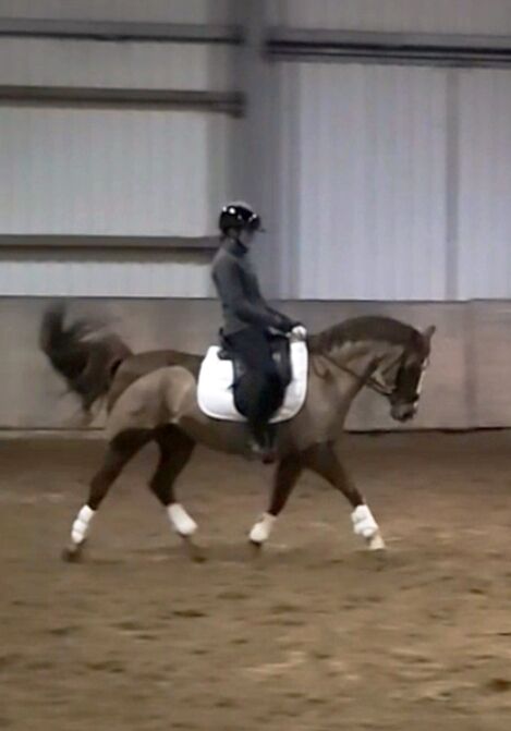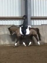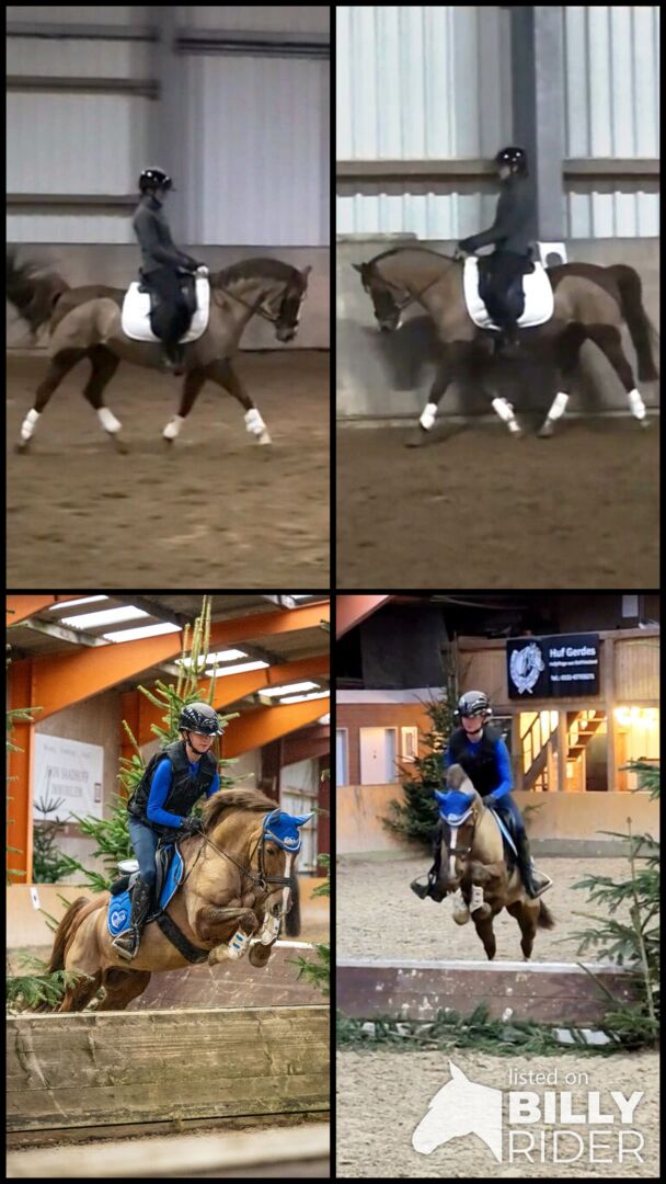 Dressage-wise he is a dream for every child (trained to A/L level) but not necessarily suitable for pure beginners when jumping, as he already shows some go to the obstacle. Under experienced riders he jumps a small A course in training.