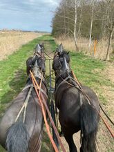 Great Friesian x Noriker mix gelding - Jack is a 3 year old Noriker x Friesian mix black gelding, without markings. He is very friendly, whether with other horses or with people. Jack is approx. 152cm tall and has been broken in for 2-3 and 4 harnesses and ridden in all 3 gaits in the field. He is always motivated at work and wants to do everything right. He is fearless, well-behaved and not sensitive to noise. Even as a foal he ran along with his mother in the carriage, which taught him a lot. He is also very familiar with other farm animals, machinery and children. Jack is very well-behaved in the horse trailer and is well-behaved at the farrier, he is barehoofed.