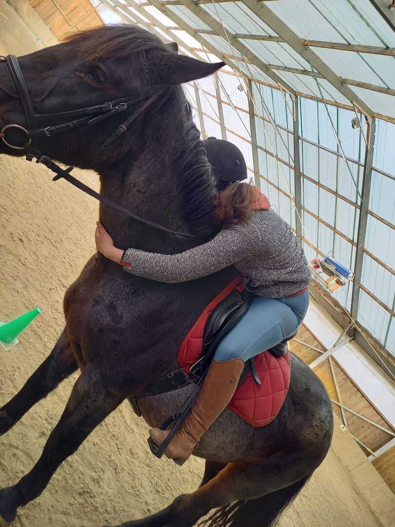 Her name is Szedres= blackberry She is 1.60 tall. Szedres is 11 years old and in good health. She currently goes to school with children so beginners can also ride her. Szedres has a calm nature and is not skittish at all. She loves to go for rides and is always easy to handle, especially with older children. She is also very good at the farrier. Walking on a trailer is no problem for her. She has never been lame or anything else. Videos I send gladly on request. Viewing by appointment gladly possible.