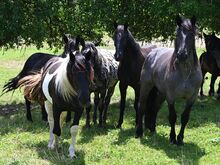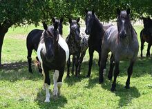 Great Noriker black pinto mare - Melli is a 2.5 year old Noriker black pinto mare with very good gaits. She is very affectionate and cuddly. Melli has lived with me since she was a foal. Her owner has to part with her and her mom Miriam, so she asked me to take care of her. Melli will be about 160-163cm tall. She is fully vaccinated, regularly wormed, PSSM1 free, as presented to the farrier. Melli's sire is the champion Tiamo Z Vulkan, who was licensed with 7.91 points. He also passed the stallion performance test as Vice Reserve Champion with an overall index of 118.32. Her dam is Miriam, who is registered in the studbook as a stallion dam with a score of 7.64. Melli climbs very well into the horse trailer and is well-behaved at the farrier. She has mastered the ABCs of young horses and is fearless, friendly and clear-headed. She knows other farm animals as well as children.