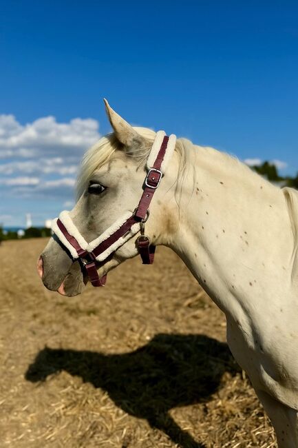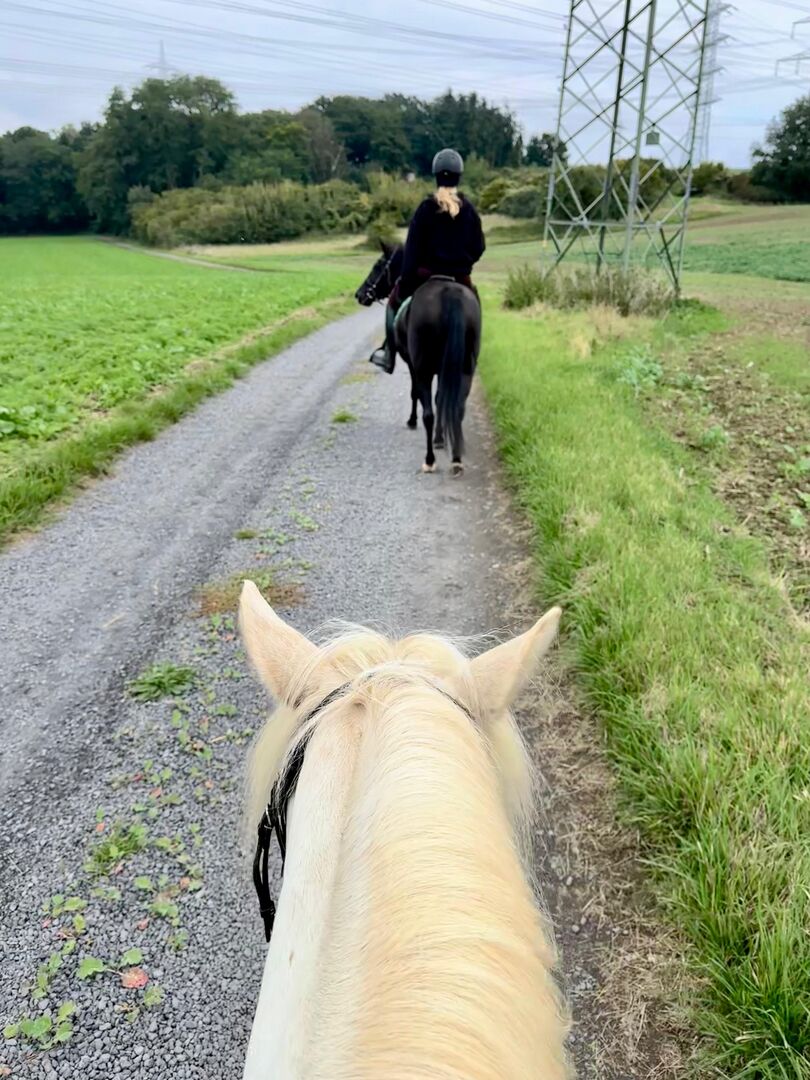 He is sweet and motivated under saddle. He learns very quickly, always wants to please and remains calm even when he doesn't understand something - no bucking, no mounting. He has a pleasant amount of go without becoming hectic or difficult. With his beautiful, comfortable gaits, he has a lot of potential for further training. His stature covers him very well (rider 1.60 m and just under 60 kg). He is also super well-behaved in all gaits in the field, is relaxed and not jumpy. If something does startle him, he only flinches briefly and simply stops. He knows dogs, bicycles, cars and the like and none of this is a problem for him. You can simply relax on him.