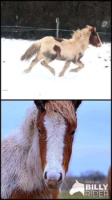 Great yearling mare with lots of tölt and a friendly nature - Adriana Yearling stud from 2025 Color: chestnut pinto (can carry concealed wind color)