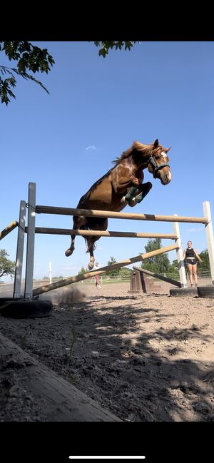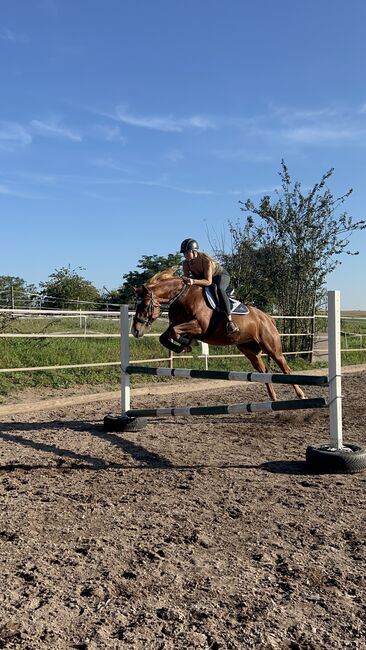 She's approx. 1.55 m tall, very friendly and easy to handle. Before her training break about two years ago, she competed solidly at elementary (L) level in dressage with prospects for medium (M) level. She also knows how to jump and enjoys it a lot, but would need to be built up again.