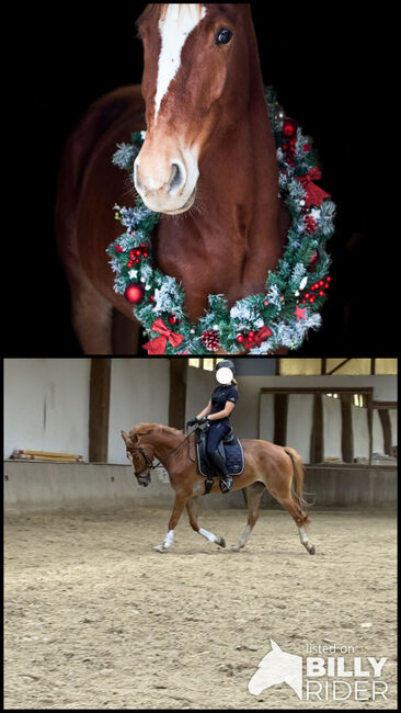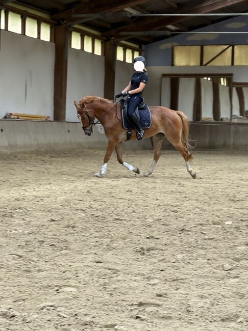 Burli is a 7-year-old chestnut gelding, approx. 170 cm tall and an absolutely reliable partner. He impresses with his lovely character, his willingness to learn and his pleasant manner. He is used to being in the herd all day and, thanks to our family situation, also knows how to deal with children. He rarely shows any naughtiness and is always well-behaved and friendly both when grooming and under saddle.