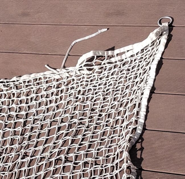 Hay net rectangular 120x90 - Hay net 120x90cm Hay net with particularly narrow mesh size of 3 x 3 cm allows horses to eat calmly and relaxed. With hanging rings at both upper ends. Can be filled easily and sufficiently. Great for horses at rest. No damage.