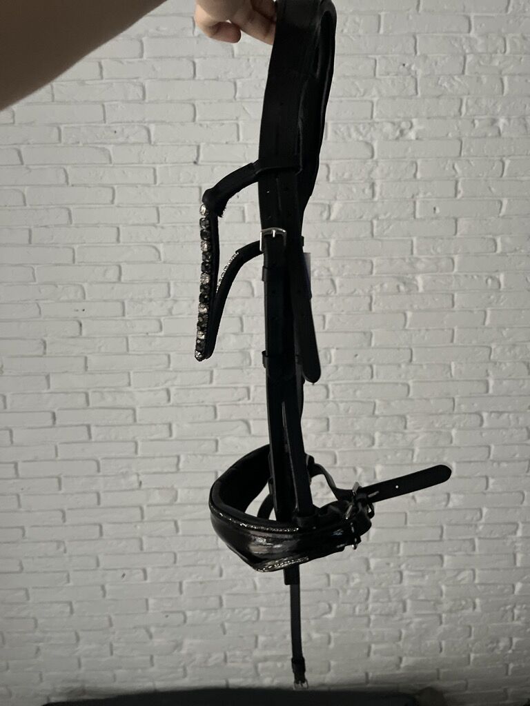 HB Snaffle WB/Full - This snaffle has been specially developed with anatomically soft padding and a cut-back headpiece. Headpiece. This headpiece is shaped to reduce pressure behind the ears and on the head. The noseband is even more anatomically shaped. This makes the fit even better, which reduces pressure on the nose. The browband is specially made with large Swarovski stones. With soft leather reins.