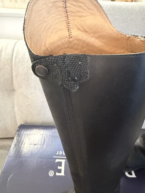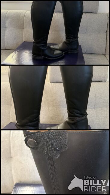 I am offering Healthy Horses custom-made boots in mint condition. The measurements are : widest calf: 35 cm Length 42 cm Size 37/38. Genuine leather very high quality with 6.5 cm soft dressage arch in snake look. Beautiful classic dressage riding boot. Unfortunately it no longer fits me, hence the sale! :) Please contact me if you have any questions! Invoice available (original price 428,00 €)