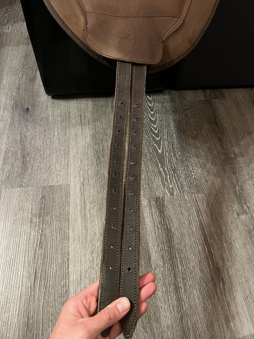 Hero equestrian saddle treeless NEW and in mint condition similar to Barefoot - I am selling a treeless saddle from Hero Reitsport in mint condition. It is similar to the Barefoot Cheyenne model. The saddle was only used 3 times on the horse for about 45 minutes each time. I had used it as a transition saddle, but now that I have a suitable English and Western saddle, I no longer need it and it is definitely too good to have lying around. The material is genuine cowhide and has just been freshly cleaned and cared for. Please note that the saddle has not yet settled and therefore looks very wide and high on the horse at the beginning. However, this will settle with time. Stirrups can of course be used on the saddle, the spring is closed. The fork can also be replaced, the classic ones from Barefoot should fit (no guarantee!) and be inserted through the zipper. This is only one-sided, i.e. no double slide. I used the saddle on a wide Friesian and Noriker. Therefore absolutely ideal for the wider horses.