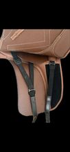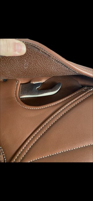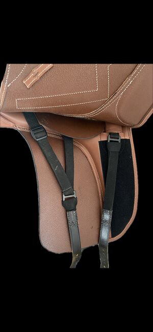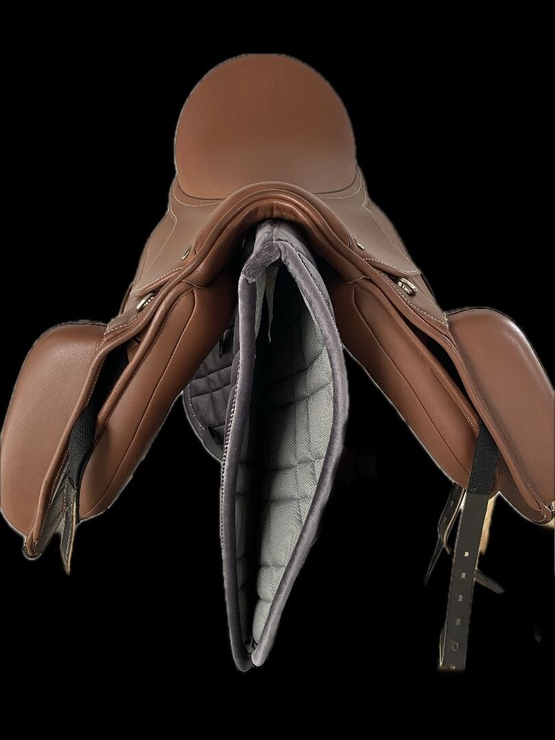 - German leather - deep seat - straight saddle tree - three-dimensional saddle tree - open stirrup suspension - fixed knee rolls - 46/47cm long - replaceable gullet plate