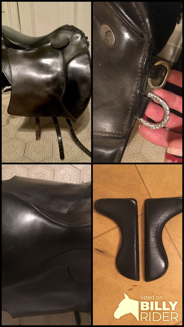 The thick wax leather is not sensitive to rain and has always been treated with the appropriate care product, so it is supple. The saddle has signs of use as it was ridden a lot, see photos, was on a round-ribbed Connemara mare.