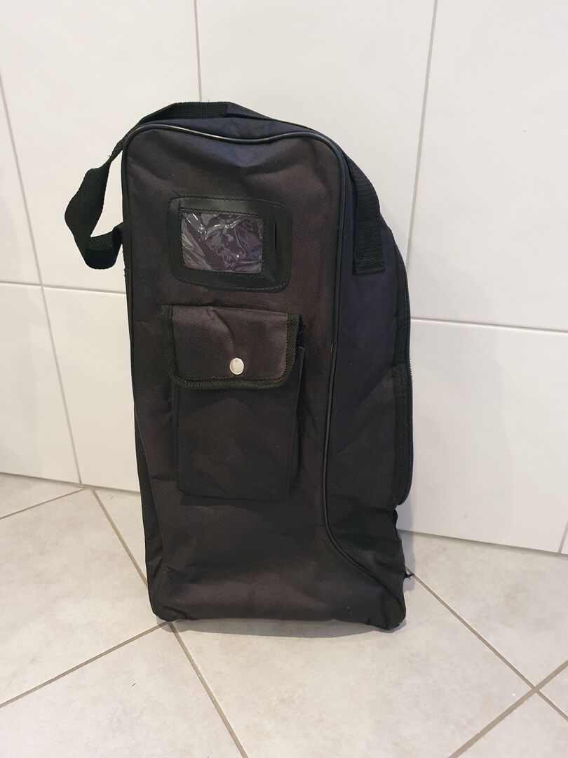 HKM riding boot bag black - Sell my rarely used riding boot bag. My helmet has also found space in it. There is a small hole at the bottom part available, therefore cheap to give away. Is of course fully functional