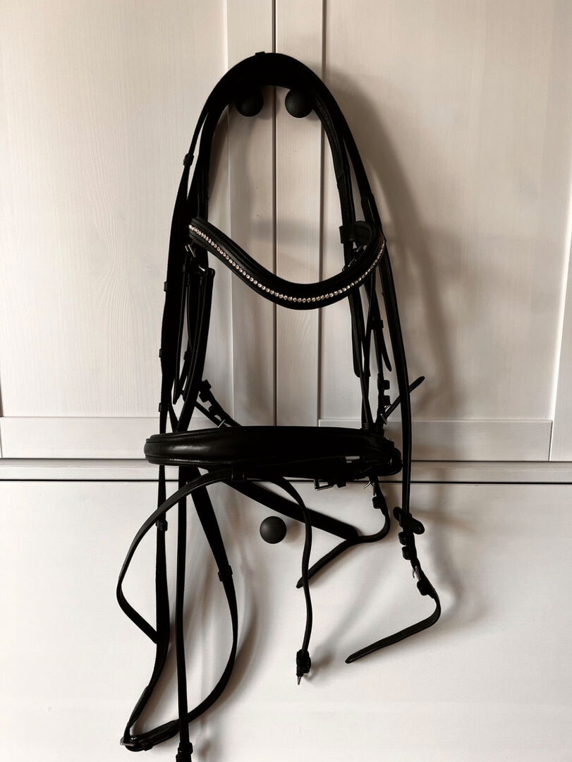 HKM snaffle WB new - The bridle was only tried on and unfortunately does not fit, as we have a thoroughbred / warmblood mix. Beautiful and with Swedish noseband. NP 89€