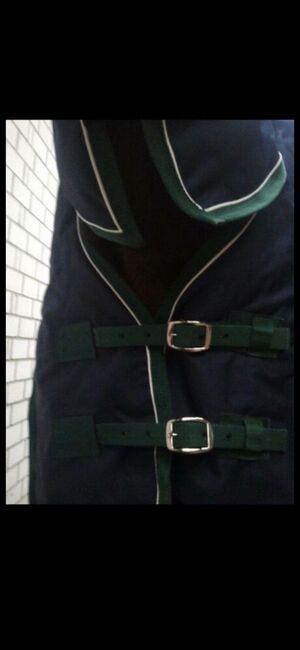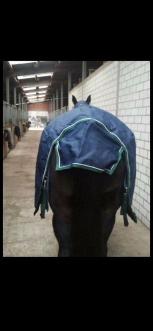 HKM winter rug 145cm - I am selling a new and unused winter rug from HKM with neck part. The rug was only on the horse for the photos and underneath was a sweat rug. Waterproof with 300g lining. Incl bag for storage. Shipping possible for an extra charge.