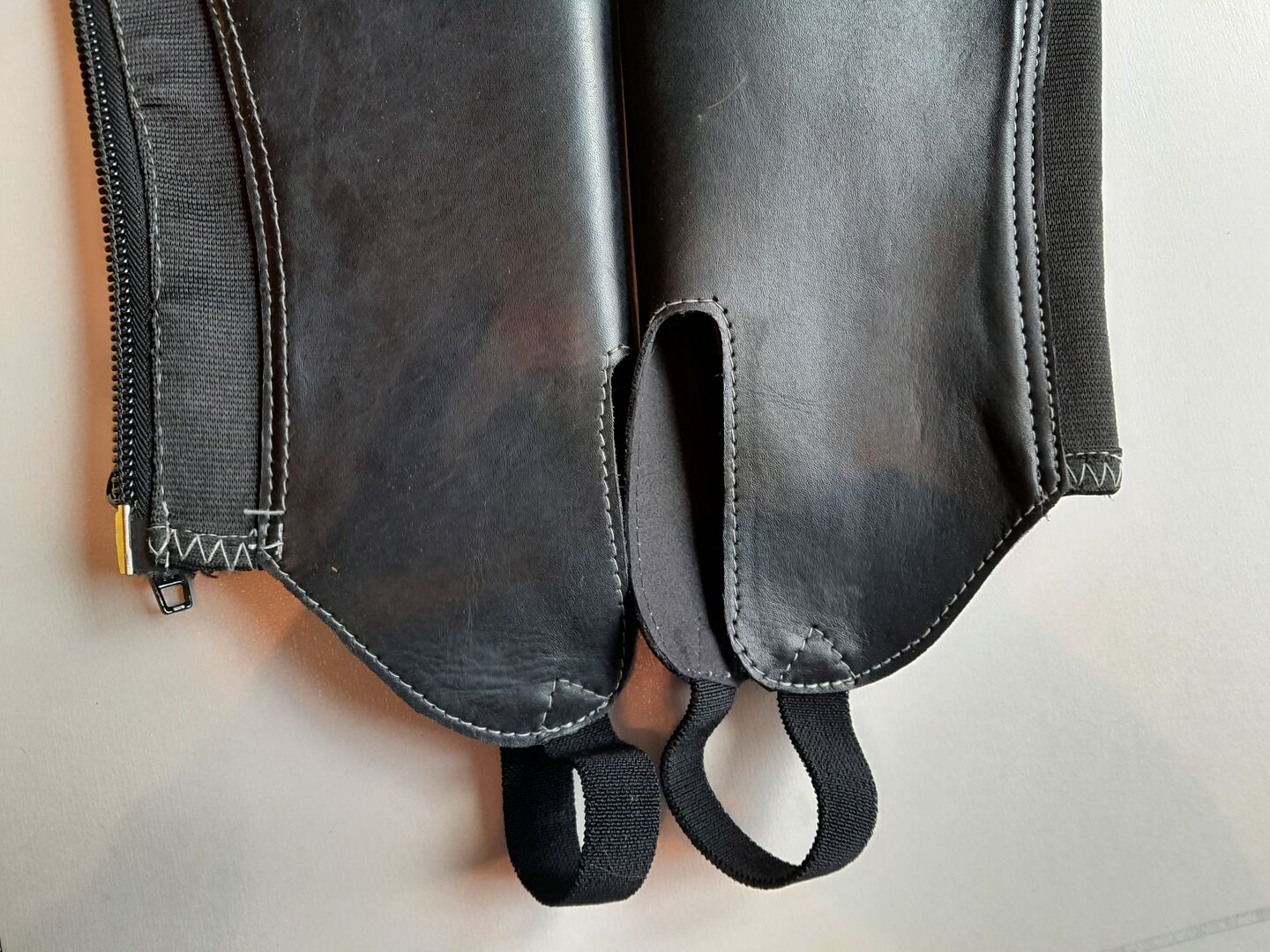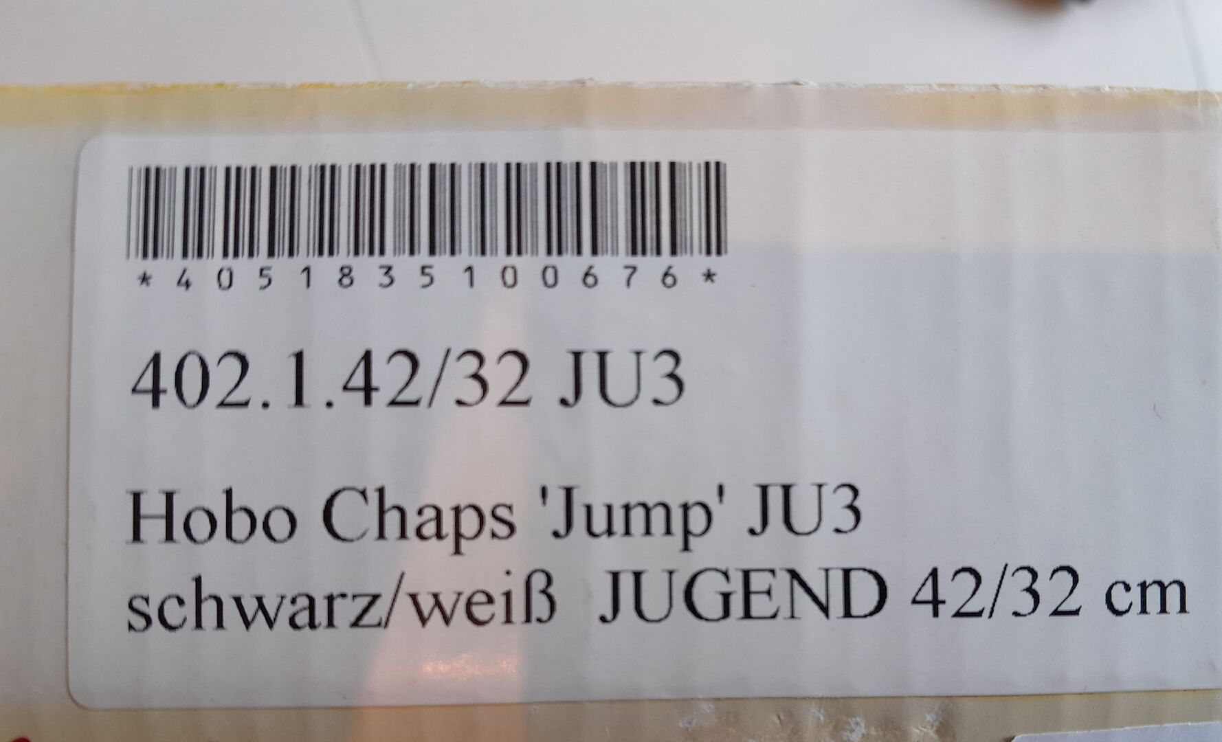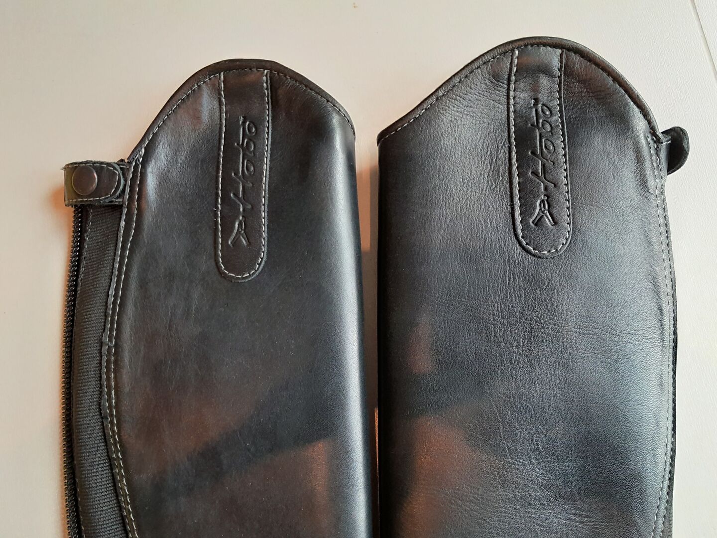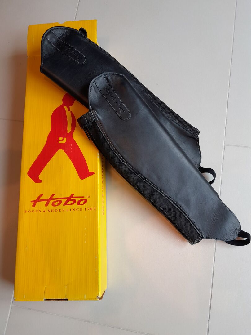 Hobo Chaps / boot shafts "JUMP", size 42/32 - Sell brand new, never used chaps or boot shafts of the brand Hobo. The size is indicated as 42/32 and should fit long thin legs ;) Color: black with white stitching. Beautiful soft leather.