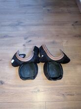 Material info & features: Tear-resistant nylon Soft padding TPU tread sole Easy to attach Rubberized front shield Sold by the piece Double KV back