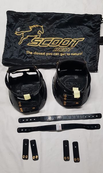 Hoof shoes / hoof protection alternative to horseshoes - Hoof boots / protection for hooves: Hoof shoes of the brand Scoot Boots Size: 5 Black /Black straps Bale protection New the shoes was only to try on the hoof. These hoof shoes are really good. What makes them better than the others? The hold on the hoof is very good. The bale has great freedom. With other shoes often gives problems. It is very easy to put on and take off. Good sole with good grip Supplied with additional straps in black & additional short straps also in black. Please measure correctly. Shoes will not be taken back. No warranty. Price incl. shipping costs