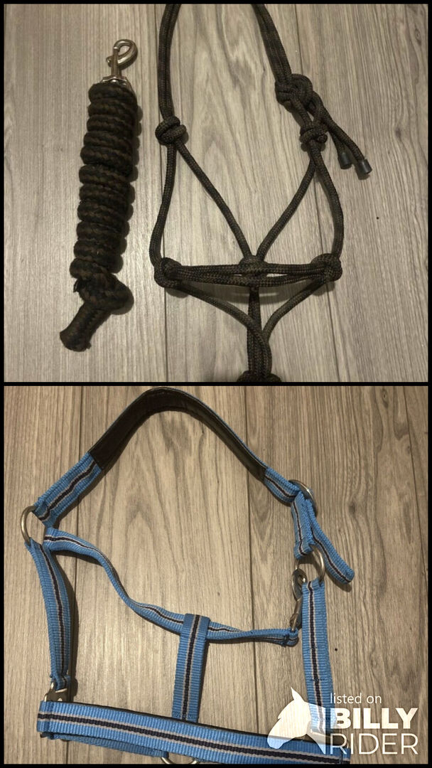 Horse halter - Sell my knotted halter in black brown size small horse with matching rope for 7€.