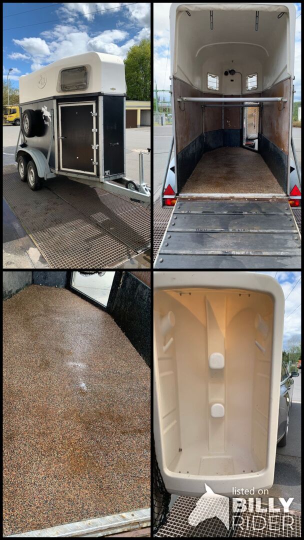 Horse trailer 1,5er - Well preserved and maintained Böckmann Uno year of construction 1997 for 1 horse. Wooden body with poly roof. Ideal for transporting 1 horse (much more space than in a two-horse trailer). Can be driven with many towing vehicles that are not allowed to pull a two horse trailer because of the lower total weight. We now mainly drive 2 horses, which is why a larger trailer needs to be and we are offering this Uno. MOT new (until March 2023). Renewed were: - Bottom plate with cast floor (see pictures). - 4 new tires - brake pads - chassis damper - Towing hitch with overrun device (incl. damper) - support wheel A tack room was retrofitted in the entrance door. The trailer has a 100km/h - approval.