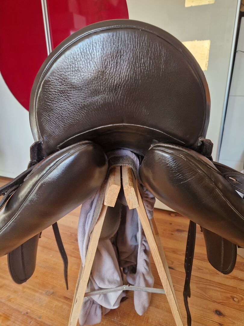 The saddle was rarely used because the seat was too big for me. It was re-upholstered in May 2024 and is in very good condition, well cared for & cherished, minimal signs of use, small scratches on the rear pommel (last picture). Original invoice available. 10 year manufacturer's warranty on the tree