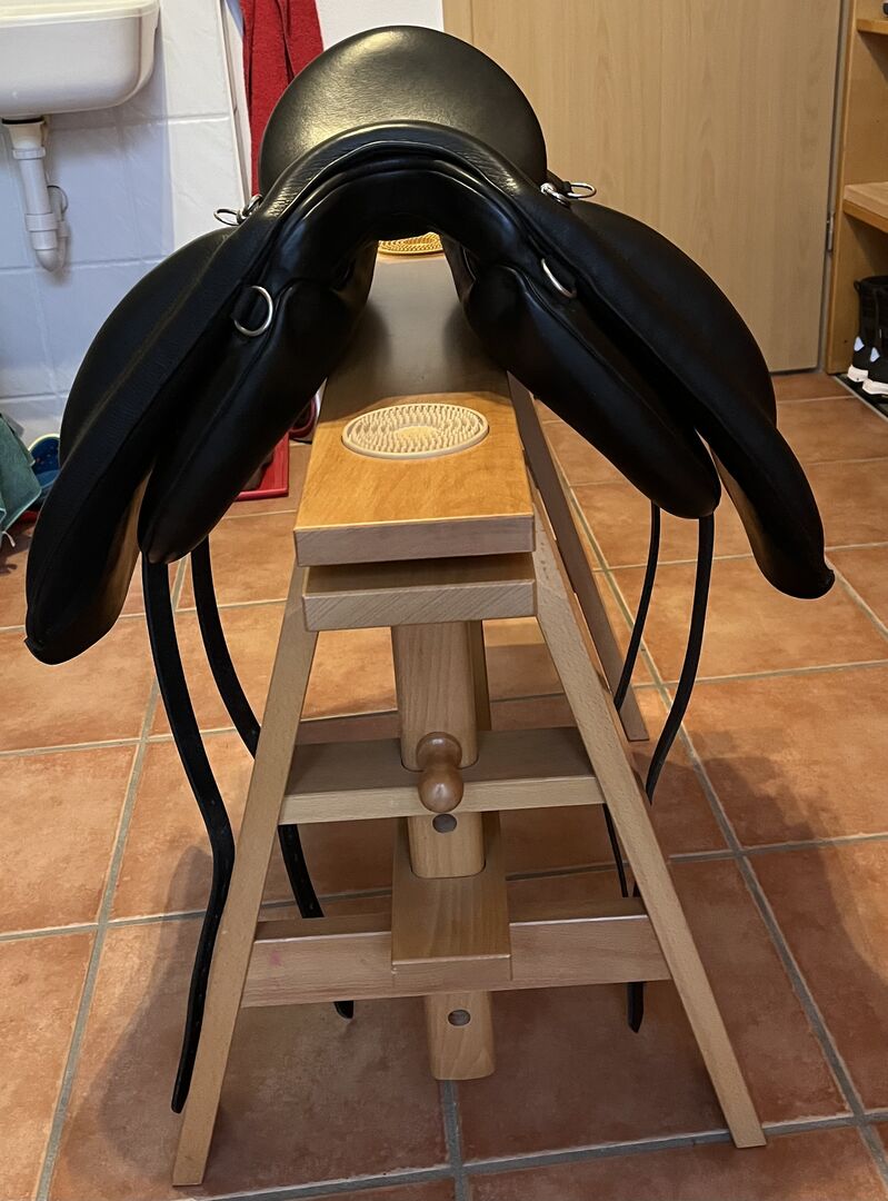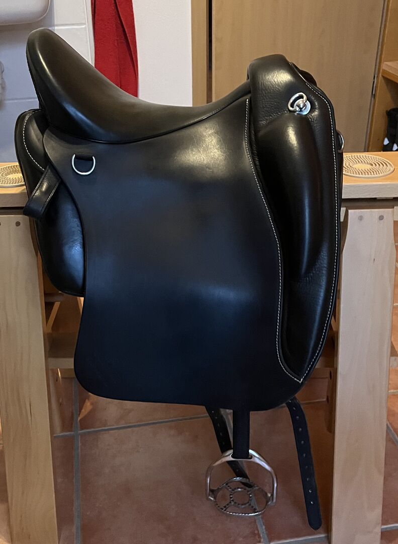 Ibero saddle Alpha Vaquero - Selling an Ibero saddle model Alpha Vaquero with a seat size of 17.5 inches and a chamber width of 31.5. The saddle is approx. one year old and very well cared for, therefore as good as new. Stirrups, stirrup leathers and care oil are included. Text from the manufacturer: Built on a dressage tree, the Alpha Vaquero is an ideal saddle for dressage work despite its soft, flat seat. Thanks to its large, soft vaquero flap, which also serves as a front gallery, it is also suitable for cross-country and as a working equitation saddle, for example. The Comfort-Compact panels allow us to adapt the saddle to almost any horse. It is particularly suitable for square horses or ponies.