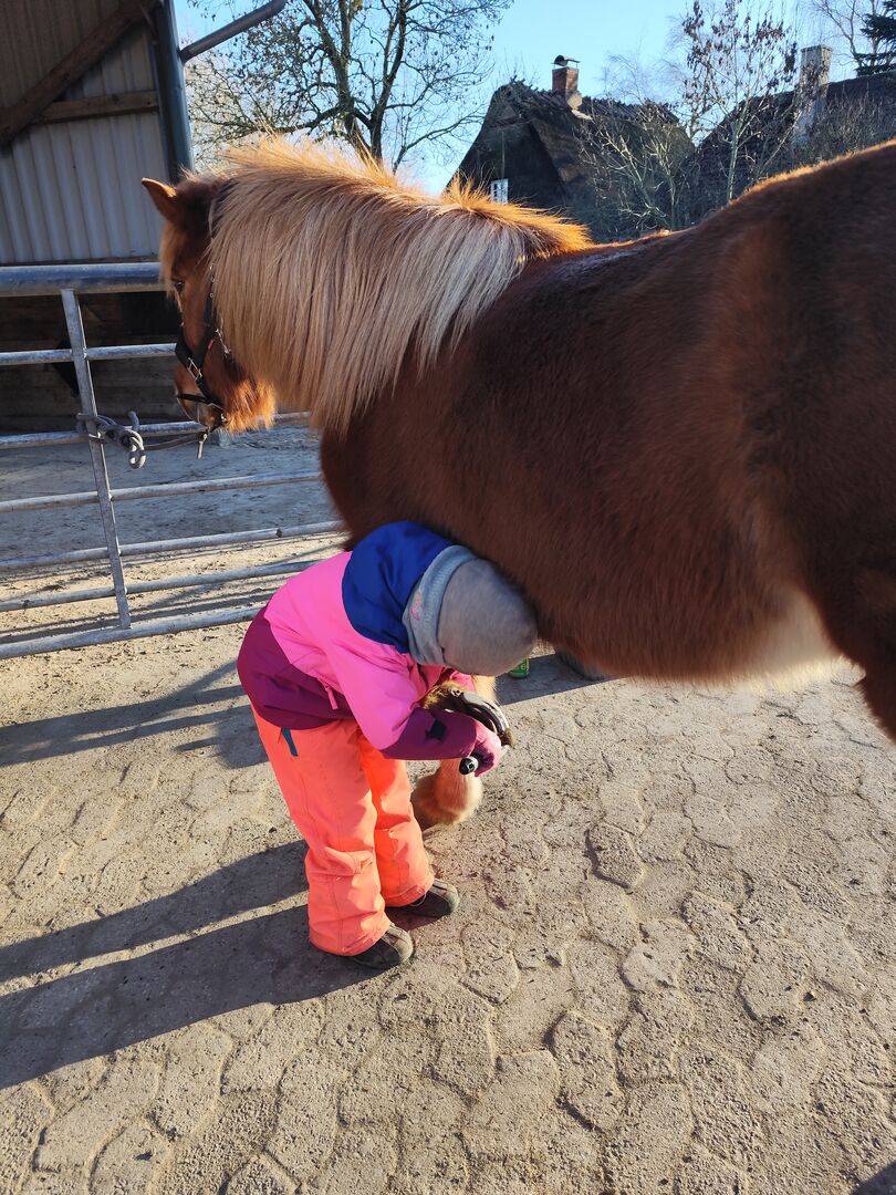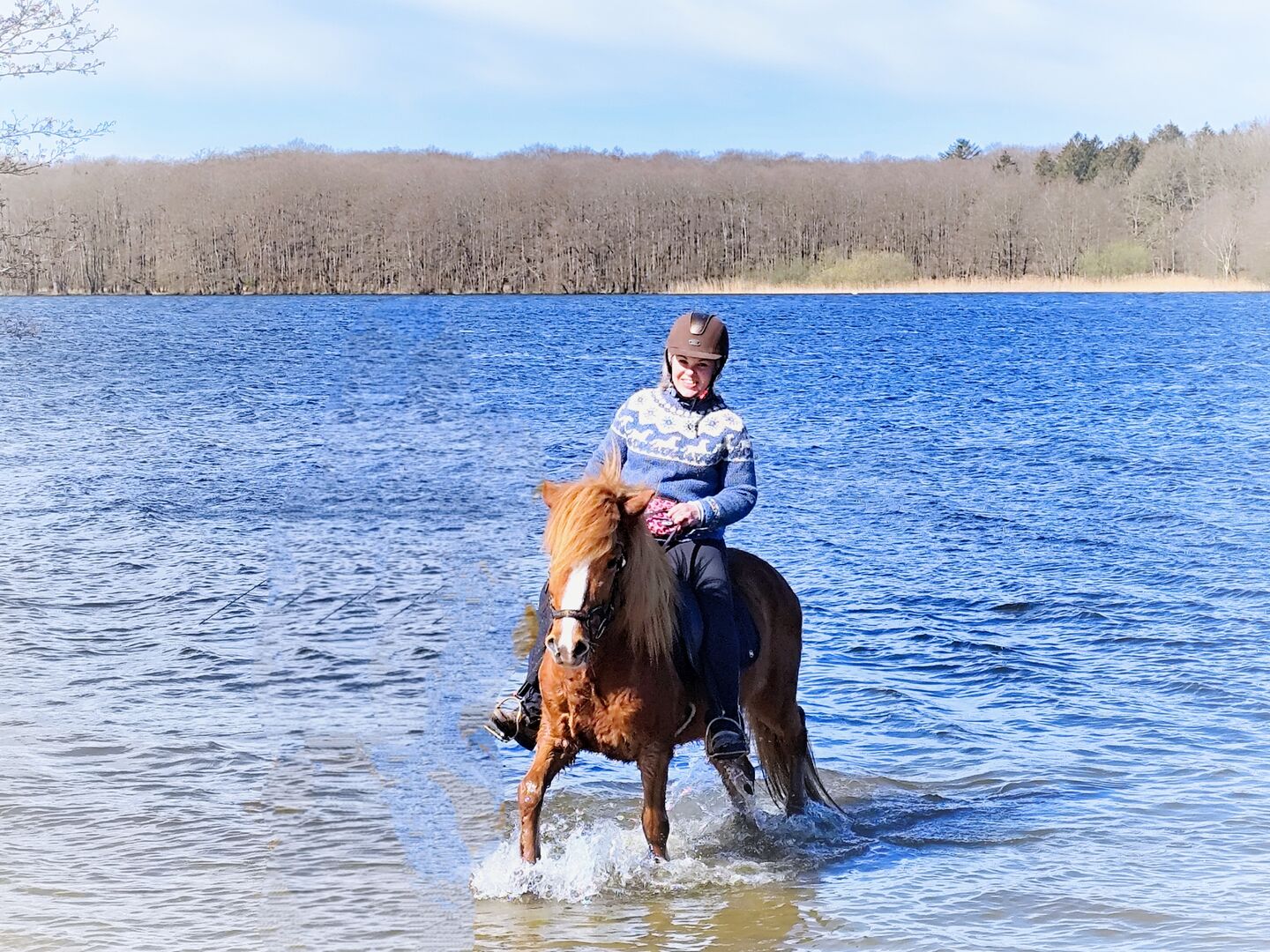 Skrauta has been in my possession since October 2023, She already had a foal with her previous owner and was a super broodmare. With the previous owner, she was only ridden sporadically in the field, with me she has received basic training, but we were mainly out in the field, where she is always controllable and yet eager to run and very motivated. Her 4 basic gaits are clearly separated from each other, full of impulsion and still comfortable to sit. We have gently integrated the tölt in the cross-country, she now also tölt in the riding arena, our focus has always been on the cross-country, where she simply brings fun, whether alone, in a large group or in unfamiliar surroundings. Her teenage riding partner rides her independently in the arena, cross-country and in riding lessons. My six-year-old daughter rides her on the lunge as well as led, and she is a real treasure to handle.
