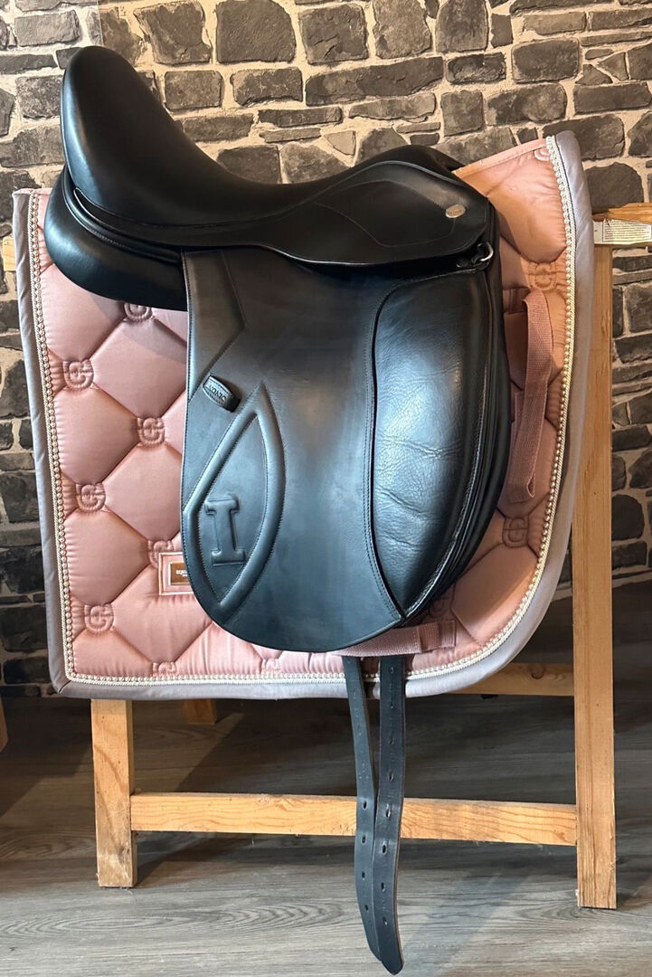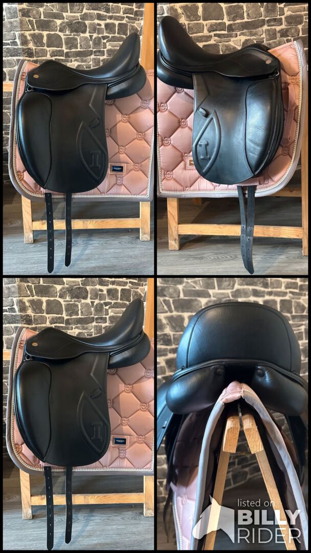 The saddle has 17.5 inches New price 3500€ Doubled leather +2 panels relatively straight tree with little swing