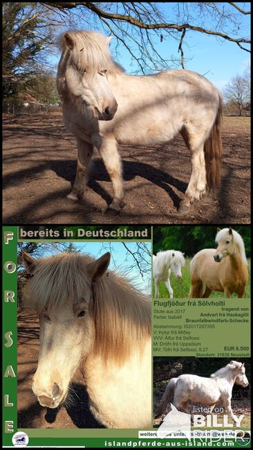 in DE: Breeding package: Isabell mare, in foal - Flugfjöður frá Sölvholti Mare from 2017 Color: Isabell Training level: trained, knows rider weight