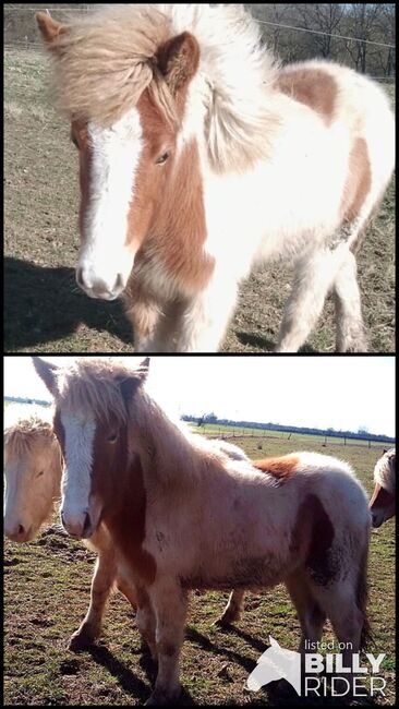 in DE: Yearling mare with a lot of tölt and friendly character - Adriana Yearling filly from 2025 Color: chestnut pinto (can carry concealed wind color)