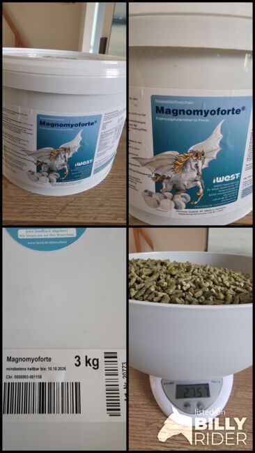 IWEST Magnomyoforte, just under 3 kg - I am offering you almost 3 kg (2757g) of the specified mineral feed, as our horse unfortunately does not like it. It is stored clean and dry, the measuring cup is of course included. It can be kept until at least October 2026.
