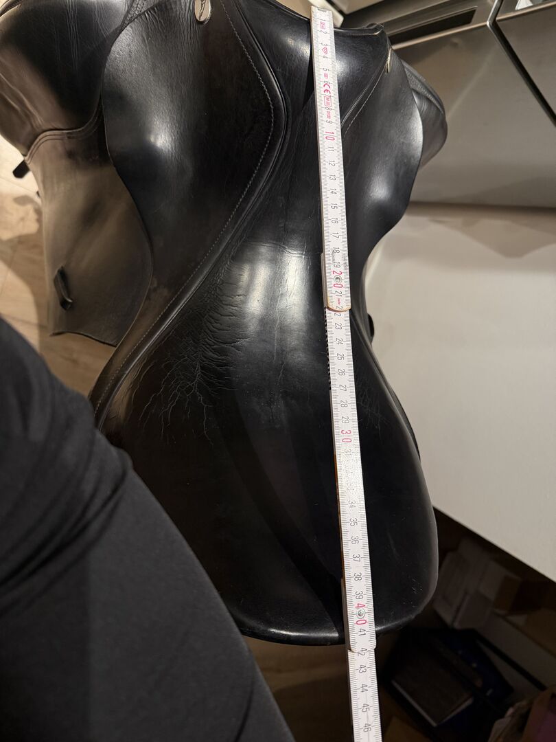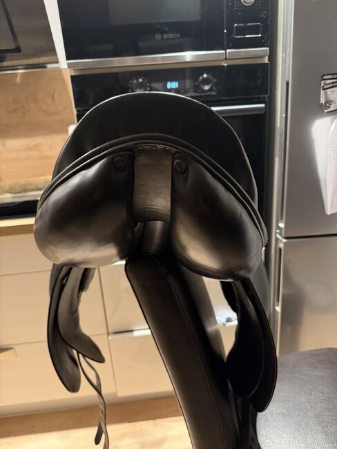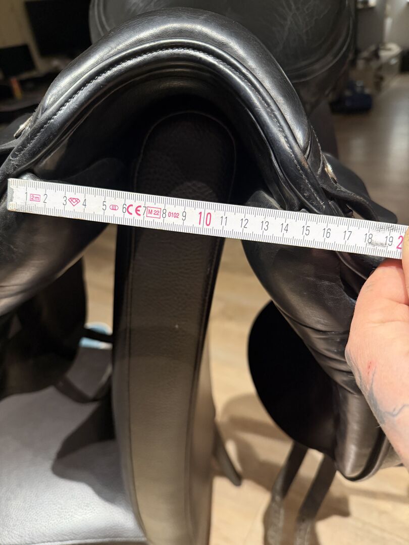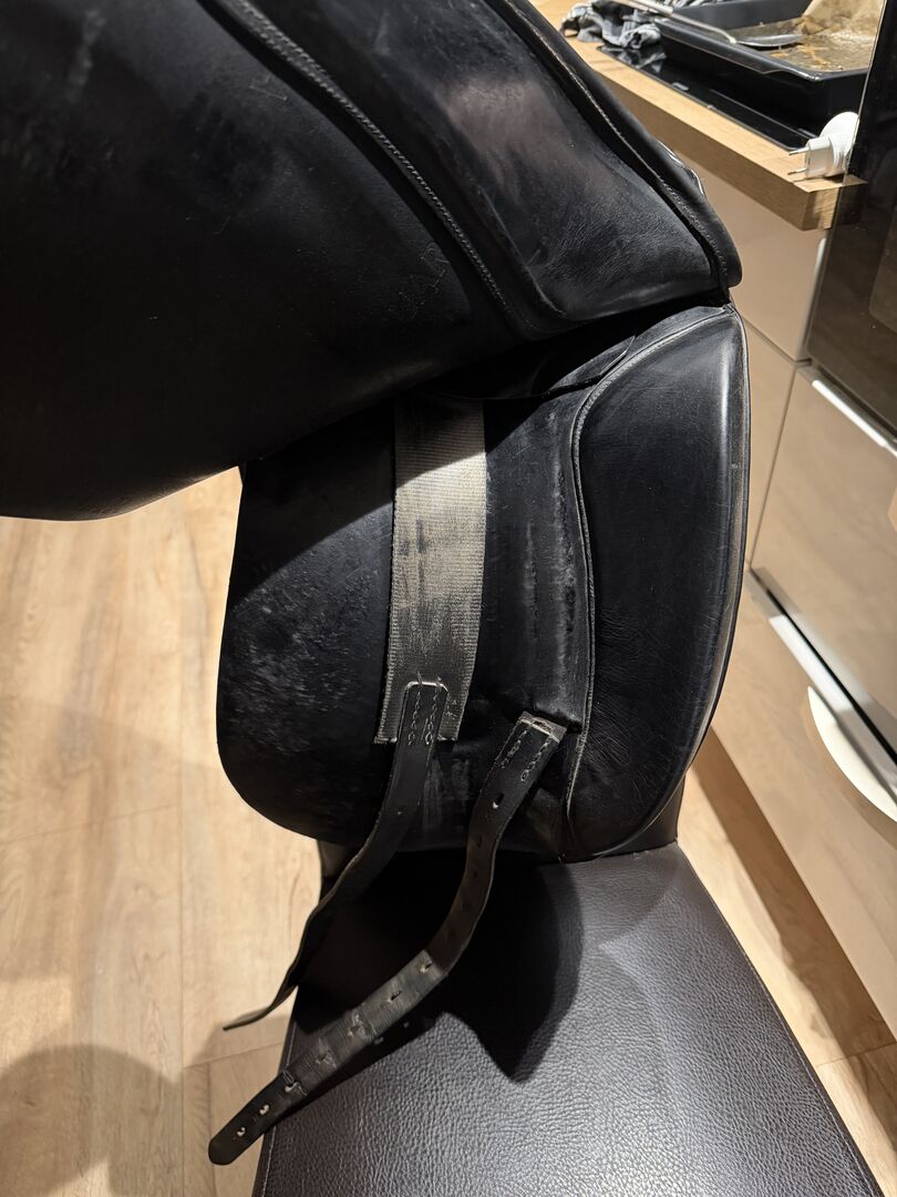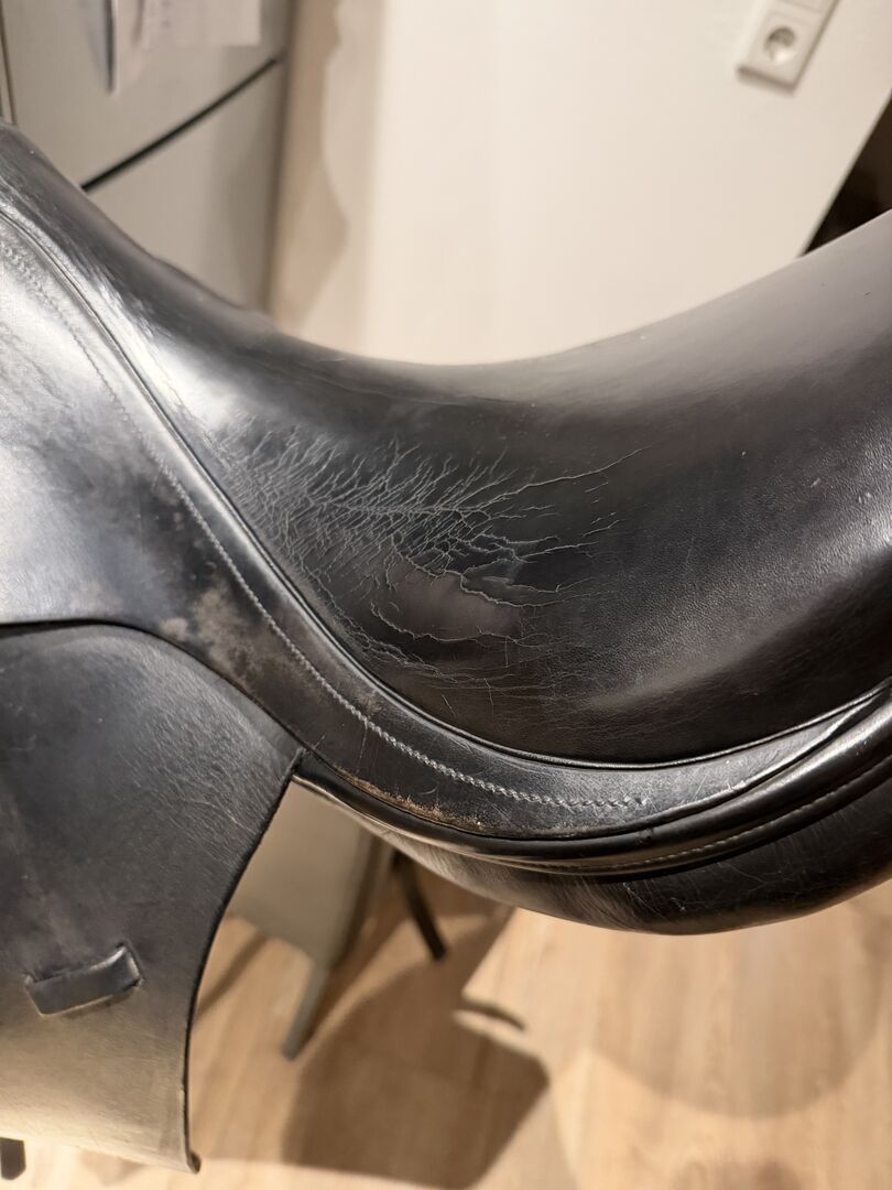 Jaguar XKC dressage saddle, 18, Harry Dabbs - For sale used but well preserved dressage saddle from Jaguar Harry Dabbs, model XKC in 18 inch. The saddle has superficial cracks in the leather on the seat, but otherwise in top condition! Super suitable for horses with a short contact area as it moves out of the back very early thanks to the French panels.