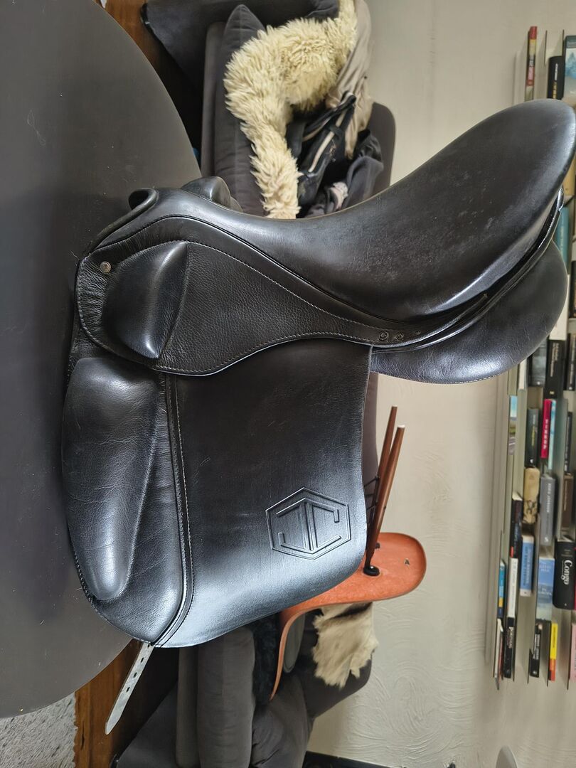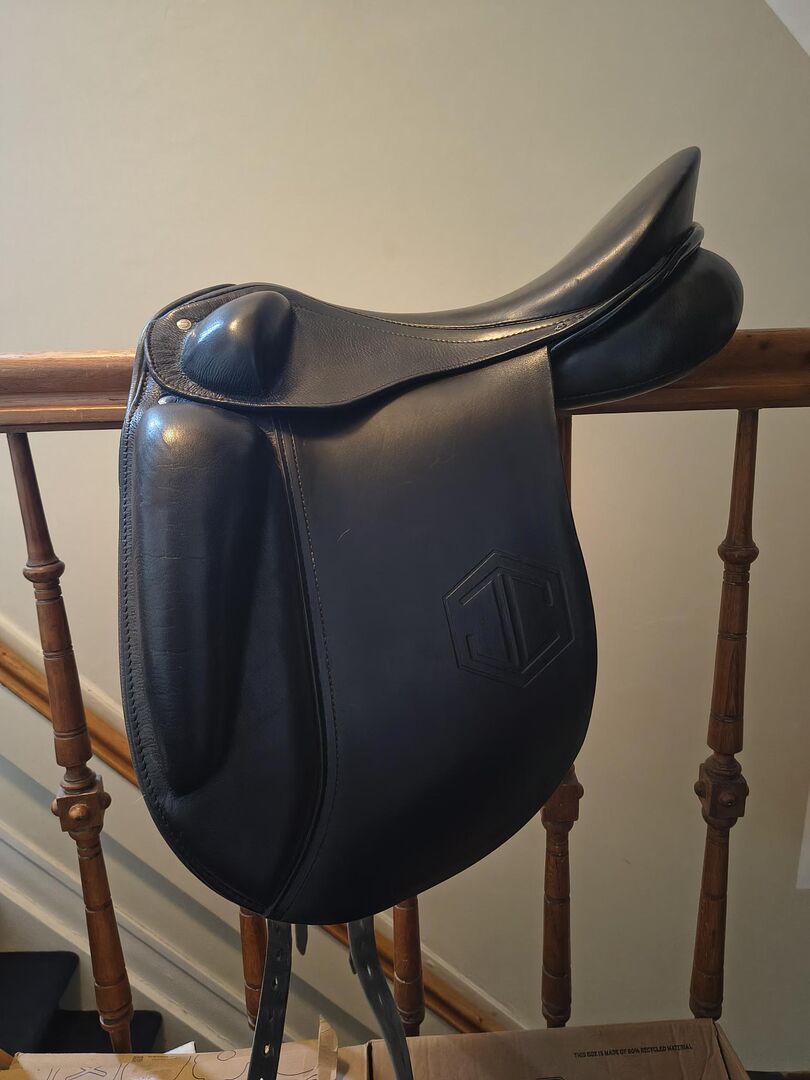 saddle for gaited horse ( Passier & Sohne) by Julie Christiansen. 17.5 inches. It's filled with wool , not foam. (Info via Google using the search term "Der Gangenpferdesattel JC von Passier")