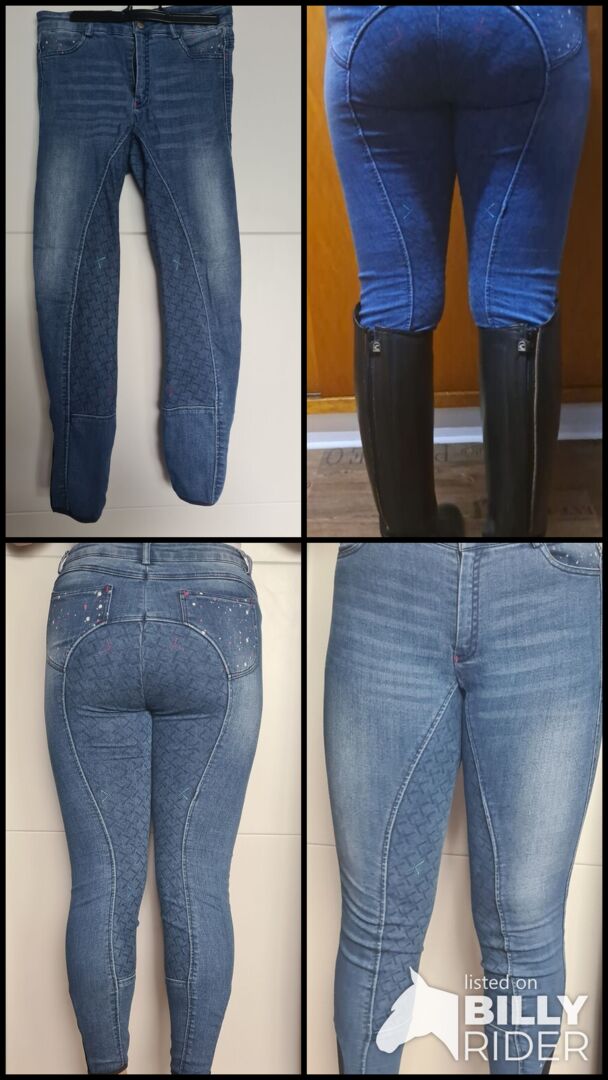 Jeans breeches for children - Sell here a little used denim breeches. It was worn only 3 times. Everything works. It has two pockets in the front and back decorated with rhinestones. The breeches are very comfortable when riding. Size: 176 Original price was 75€ Price is VB Prepayment