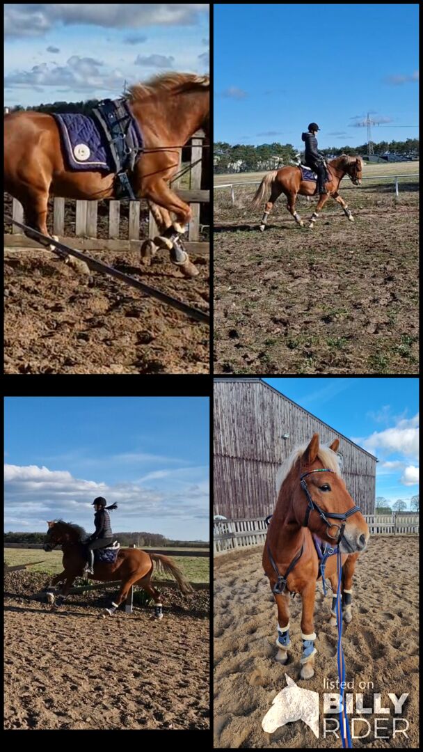 Jumping pony gelding 5y. - Sell a 5yo talented gelding in German Riding Pony format. However, breed is a Hungarian sport pony. He has been measured in at 1.46m so will stay in pony measurement. He has been in training for a month and can walk/trot and canter safely under rider. First jumps under rider have also been done. He has also been cross country with him. Here he is very diligent. However, it still requires further training until everything is solidified. Due to no suitable rider just little ridden, but will continue to work from the ground. Test riding would be possible. No beginner or children pony. He needs 1 caregiver. We can imagine him super as a bush pony because he is very fearless and likes to jump. Loading already works quite well.