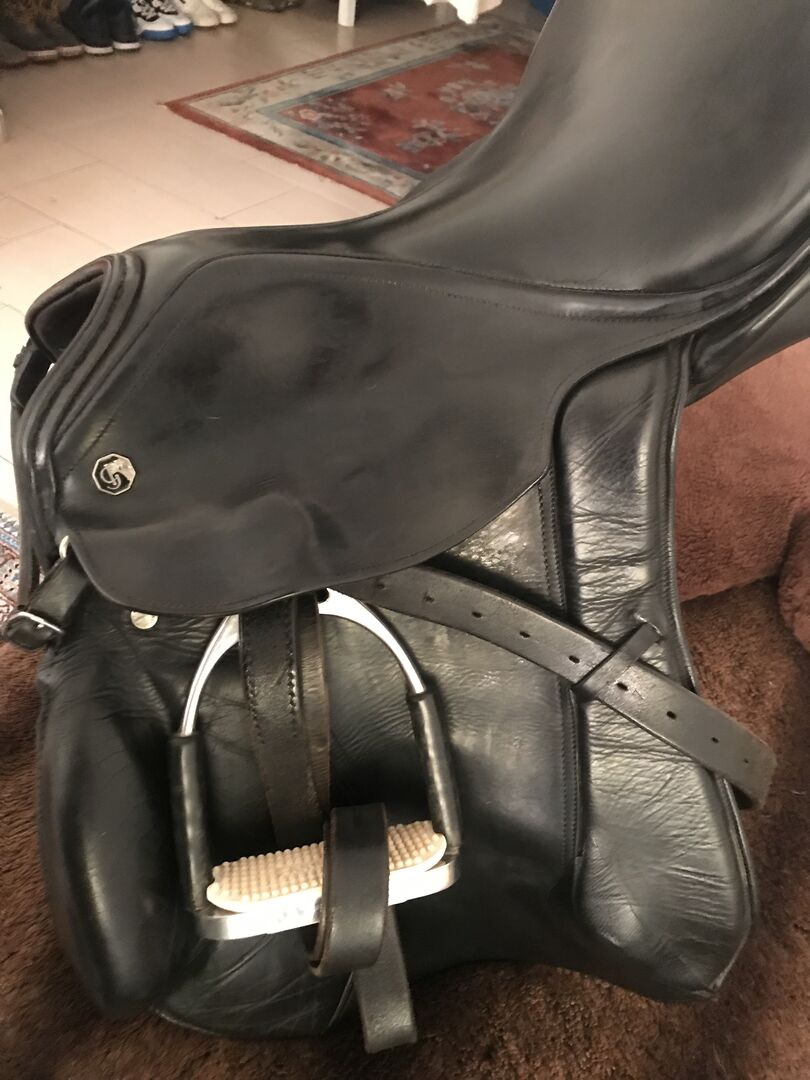 Jumping saddle - 18 inch Wide chamber Black gullet/head width ca 31,5cm Inside cavity of the chamber ca 12,3cm Height of the chamber 11 cm Support surface ca 42 Width of vertebral canal ca 5 cm