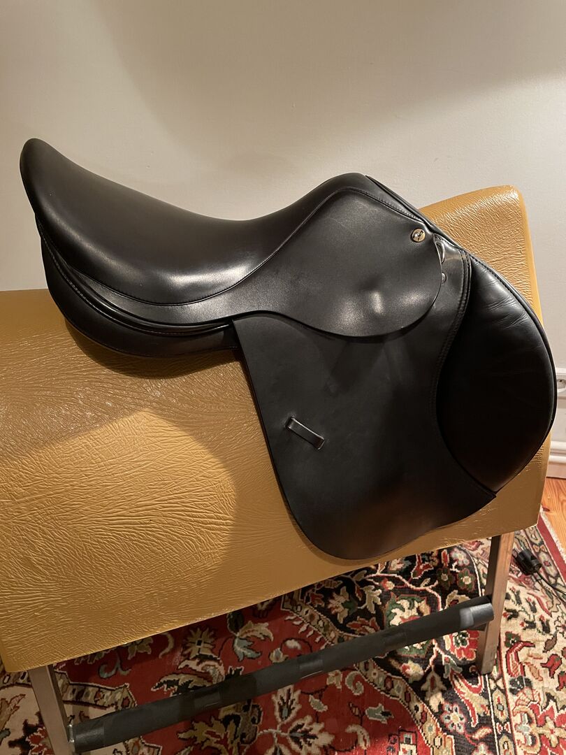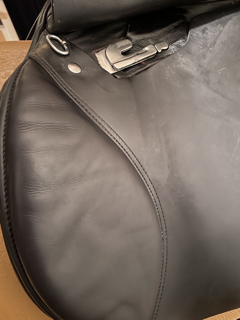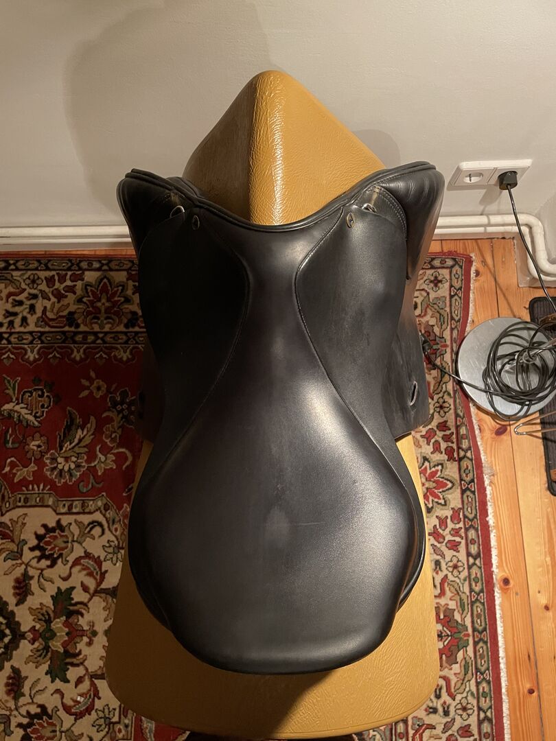 Previous use: Bought the saddle new and always used it on the same horse. It was on a narrow thoroughbred with pronounced withers, straight back and short saddle position. Selling it because the saddle does not cover me optimally as a rider due to my very long legs when cross country jumping with very short stirrups. Other than that, I really liked the saddle. It is very comfortable and thanks to the possibility of positioning Velcro thimbles individually adaptable to the rider's needs. Girth straps and camber springs are of course intact and without damage. Overall, the saddle is visually top - except for the very normal signs of use, eg from hooking the martingale. If interested, I will gladly add the Velcro thimbles and used stirrup leathers.