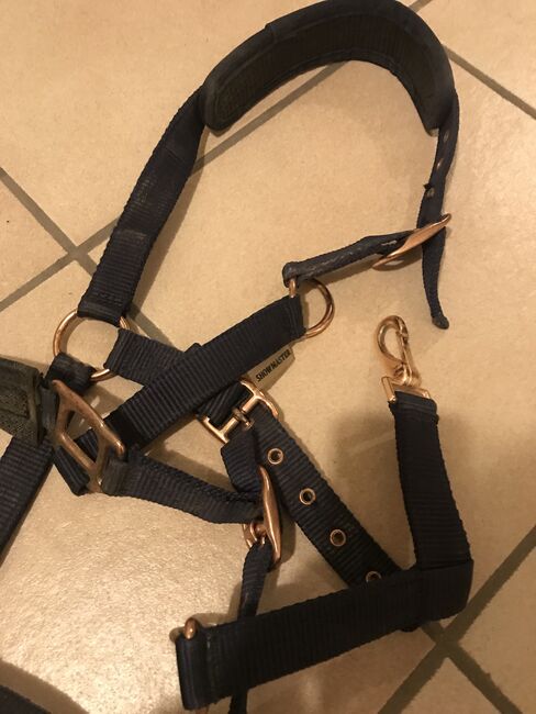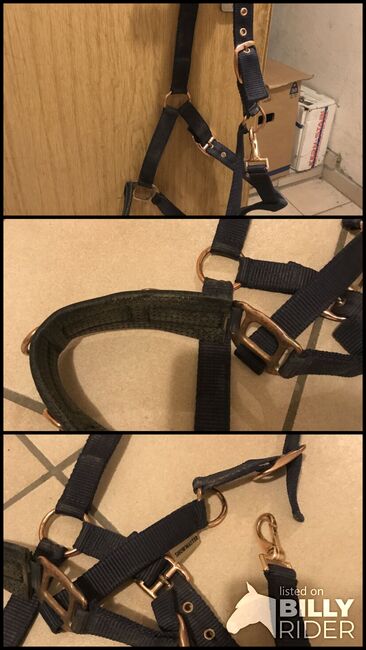 Dark blue nylon cavesson, size Cob, one ring is bent, but this is not a problem.