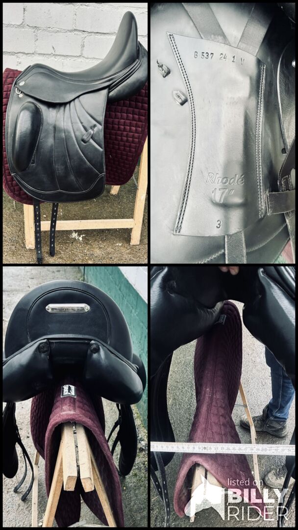 Details: - Model: Kentaur Rhodé - Seat size: 17 - Chamber width: 3 corresponds to ~ 33 - Large, attached knee rolls - Deep seat - New price: 2.500€ - Original invoice available (picture can be sent on request) Stirrup leathers are also included (no stirrups)