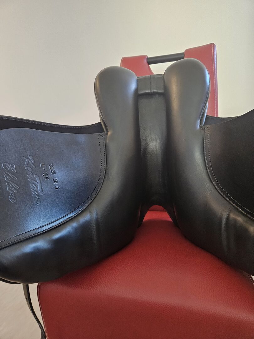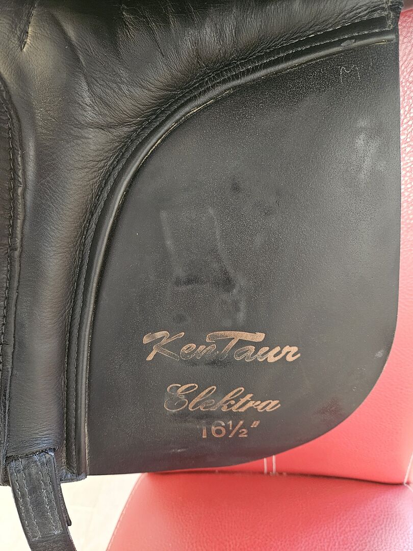 Kentaur Elektra 16.5 inch - Selling my Kentaur Elektra 16.5 inch dressage saddle. The saddle was on a small warmblood (159cm) with pronounced shoulders. The saddle is very comfortable and also gave good support during the one or other stunt on my horse. The saddle is in very good condition (see pictures), always well cared for and well stored. The saddle was used for approx. 1 year, but I am now switching to a jumping saddle.