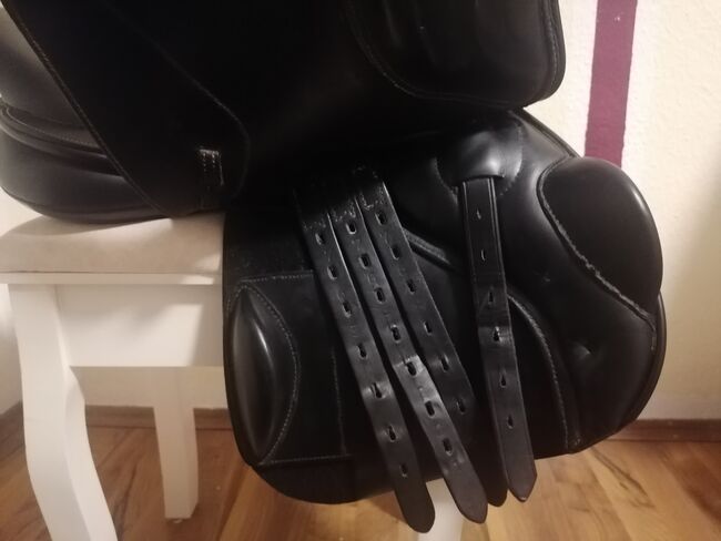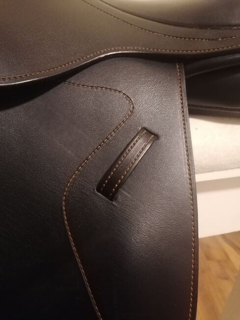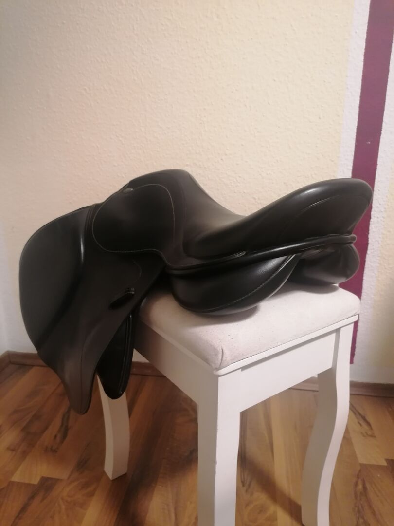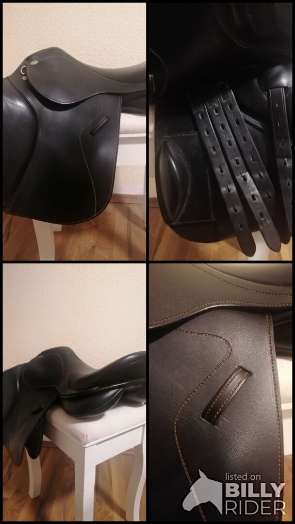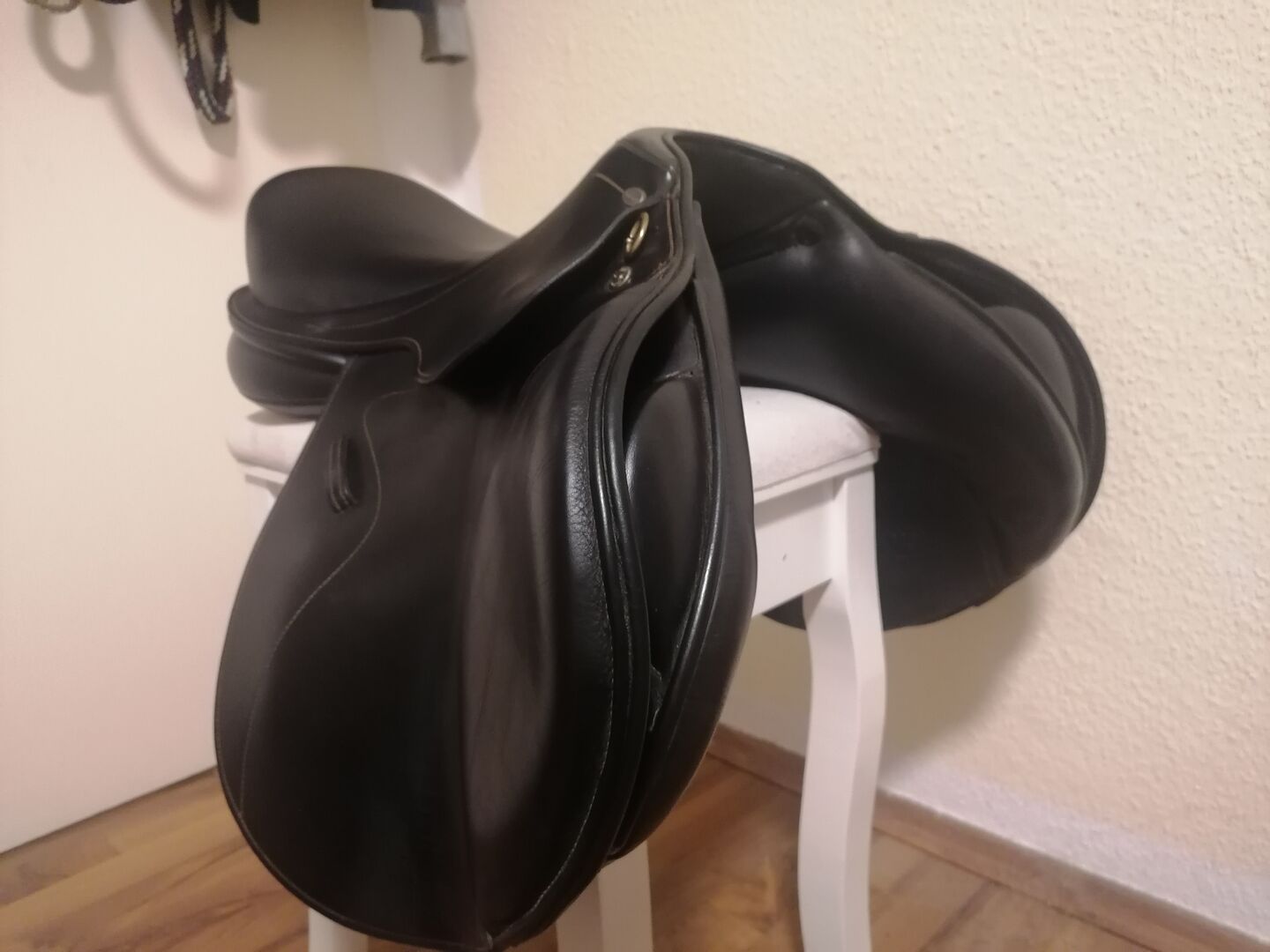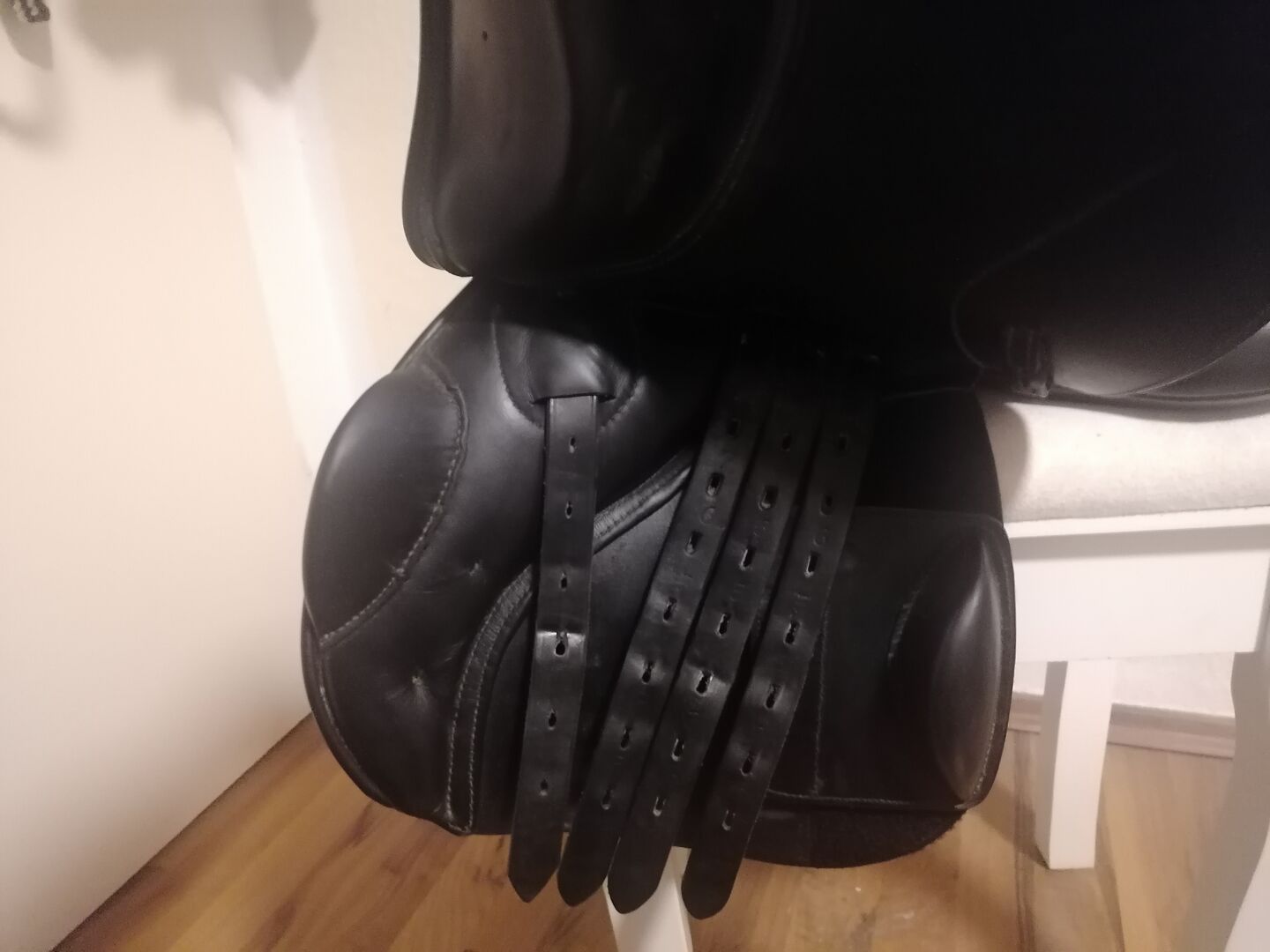 Kentaur Jumping Saddle Perseus SP 17" - I am selling my little used Kentaur jumping saddle model Perseus SP. The saddle is 17 inches and has a 3 mm chamber, but this was made slightly narrower by the saddler. It is in very good condition with normal slight signs of wear, as can be seen in the pictures. The saddle is black and has brown stitching. The saddle has been fitted with a gullet strap by the saddler. The padding was only replaced in the summer and the saddle has rarely been used since then. Saddle pad is present and will be sold with the saddle, but no stirrups and stirrup leathers. I am selling the saddle with a heavy heart as my horse is not happy with this saddle in the long term. More pictures can be sent on request.