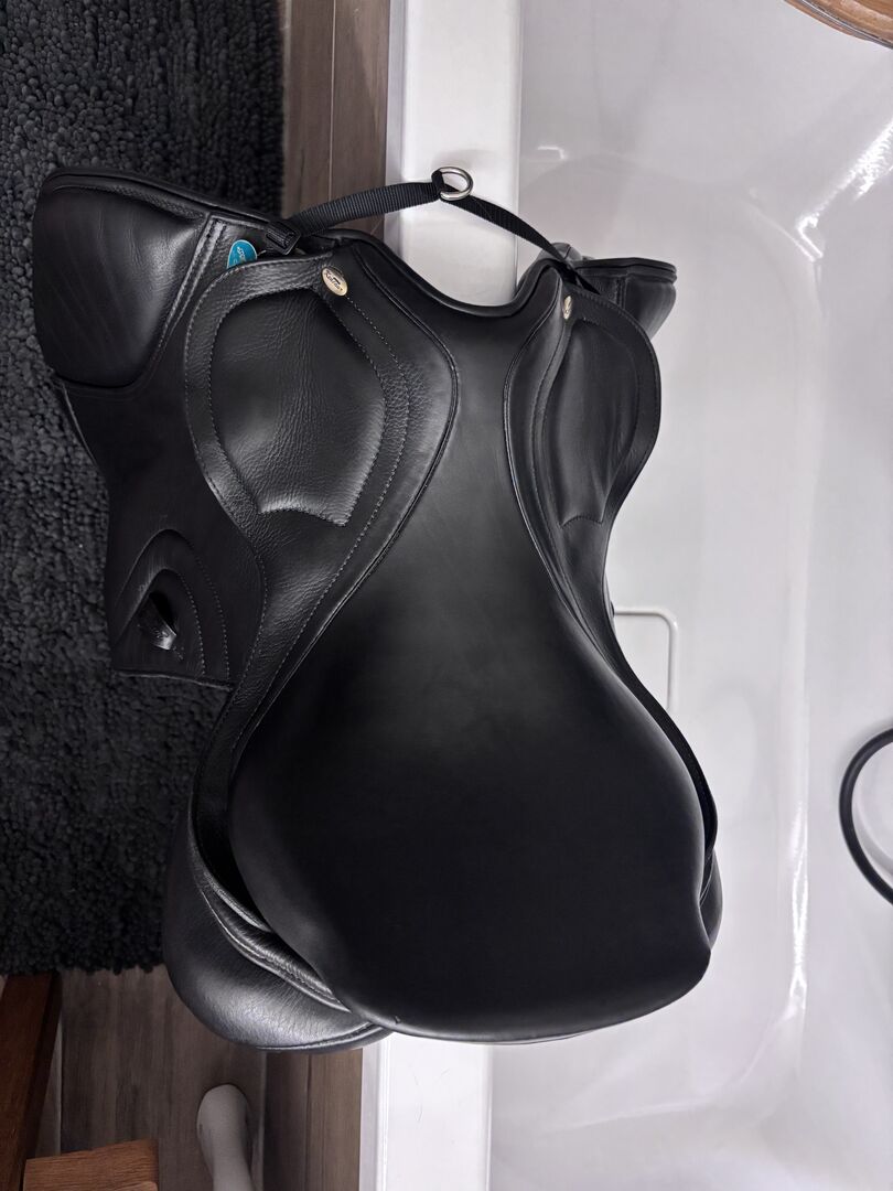 Verkaufe gut erhaltenen Springsattel „Triton“ von Kentaur in schwarz 17 Zoll, Größe 3 (normale Kammer, vergleichsweise 33 bei Prestige). Es wurde noch nichts verändert, er ist im Originalzustand. Der Sattel ist super bequem, gibt viel Halt und macht ein schönes Bein. Verkaufe ihn nur, da mein junges Pferd sich leider zu sehr verändert hat und wir ihn nicht optimal passend bekommen.