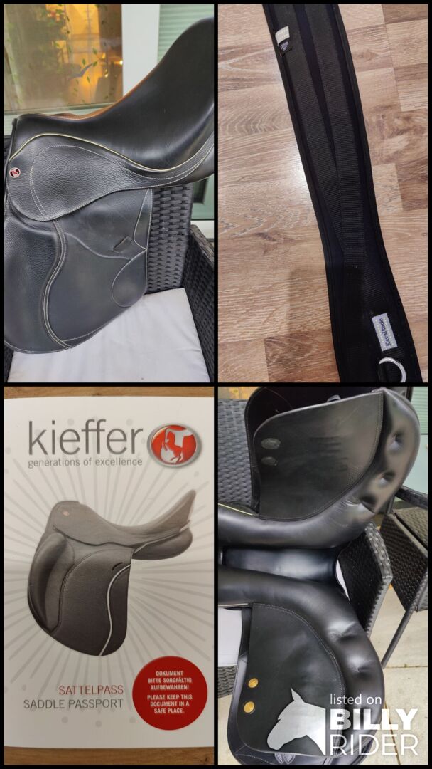 Kieffer Le Mans eventing saddle - For sale one year old Kieffer Le Mans eventing saddle in black with white contrast stitching. It was mounted on a wide huzul without withers and is also built for wide horses with rather straight backs. Seat size is 17.5 inches. New price was 2700€, saddle certificate is available. If required, I can also add a 125cm memory foam girth.