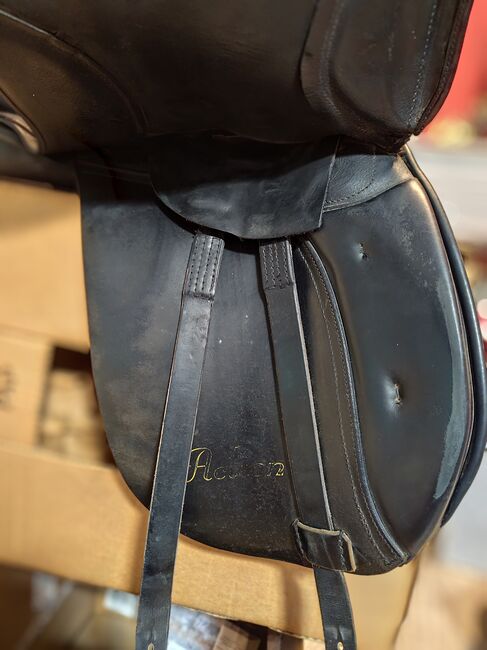 Kieffer saddle model Action - For sale older dressage saddle by Kieffer, model Action, seat size 1! (17-17½) The saddle has been well used, the girth straps need to be replaced on one side. (See pictures) The saddle is in good used condition and has normal signs of wear.