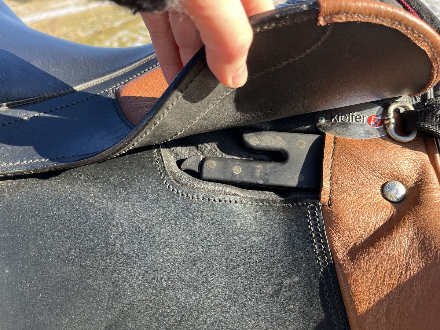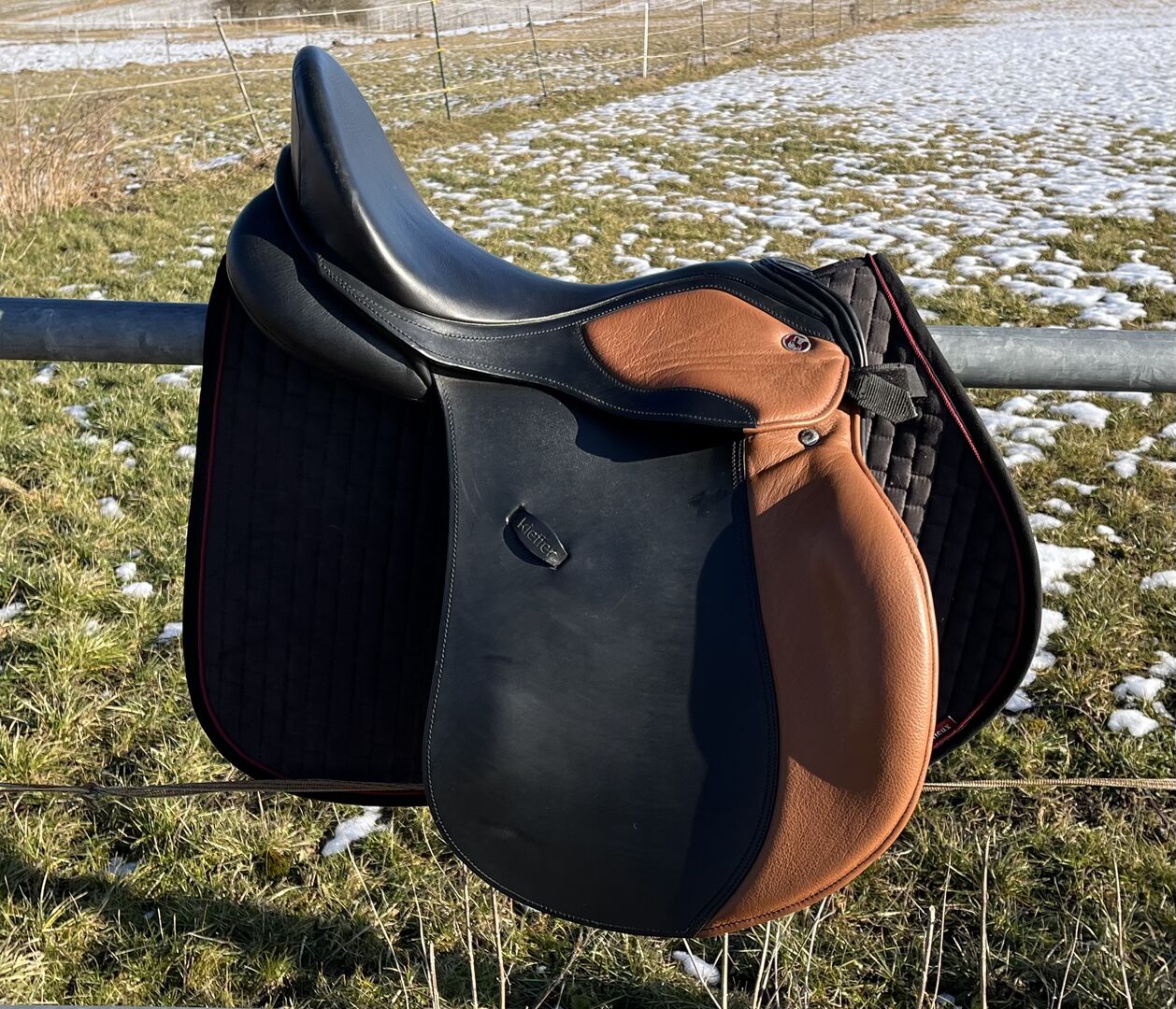 Kieffer saddle VS as good as new - Kieffer saddle model Zurich Eventing saddle As good as new, only slight signs of wear Seat size 1 approx. 17 inches with knee and calf rolls, under the saddle flap, removable Short girth straps, long girth required Has been on the horse approx. 6 times Color black/tobacco Gullet plate cold adjustable