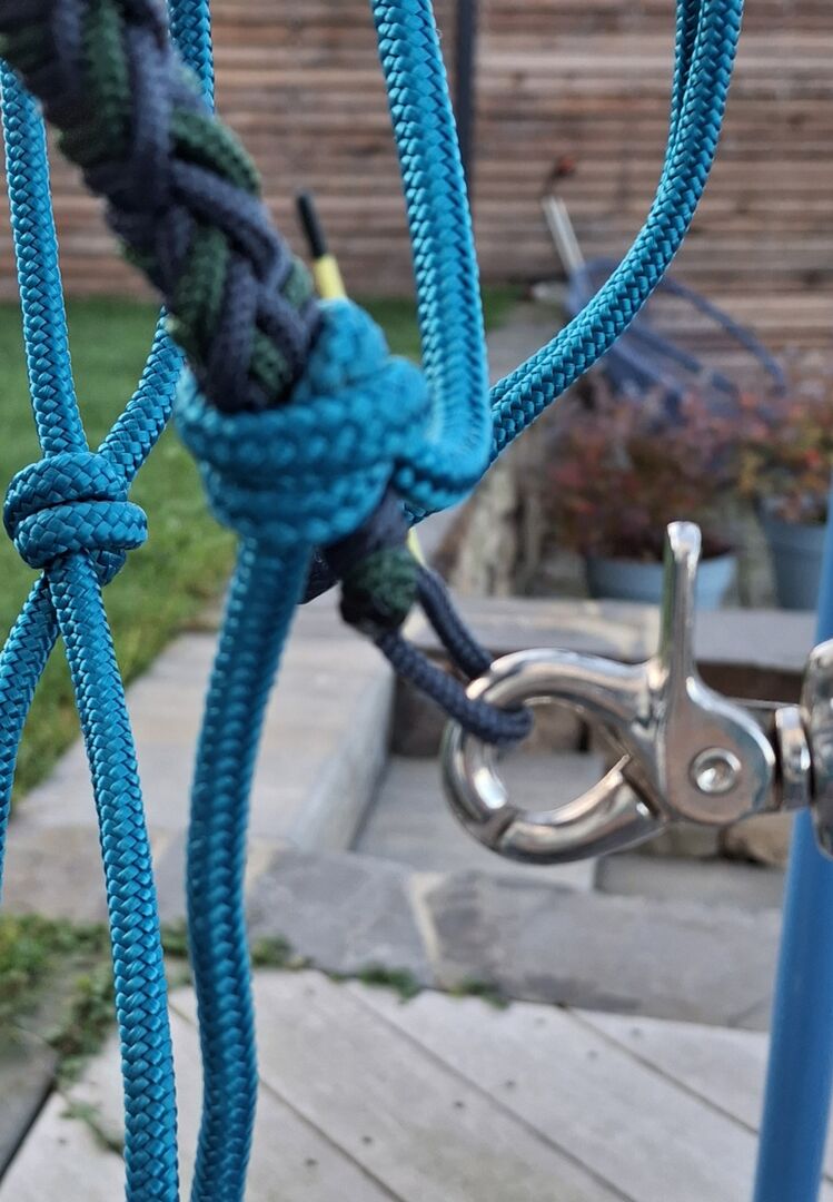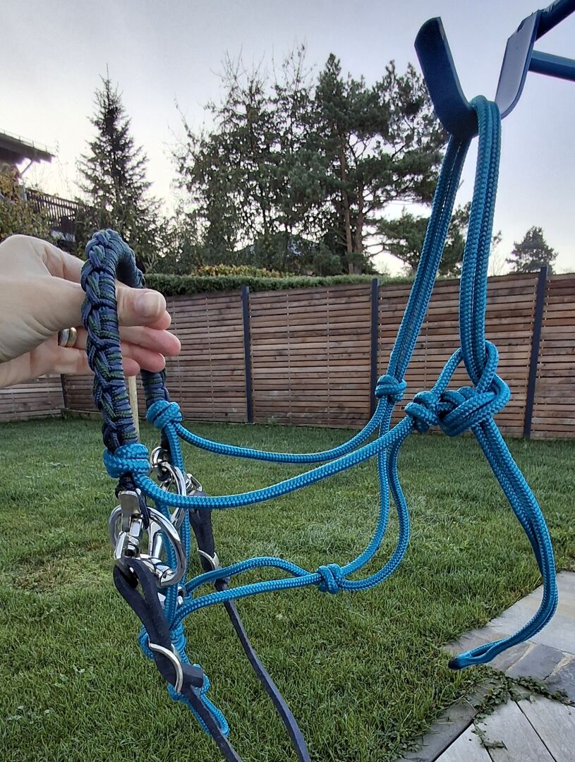 Knotted halter Riding knotted halter for Icelandic horses - Riding knot halter with sidepull loops for rings or for riding with a bit (see pictures), as well as a reinforced lead knot for working/riding with a natural hackamore