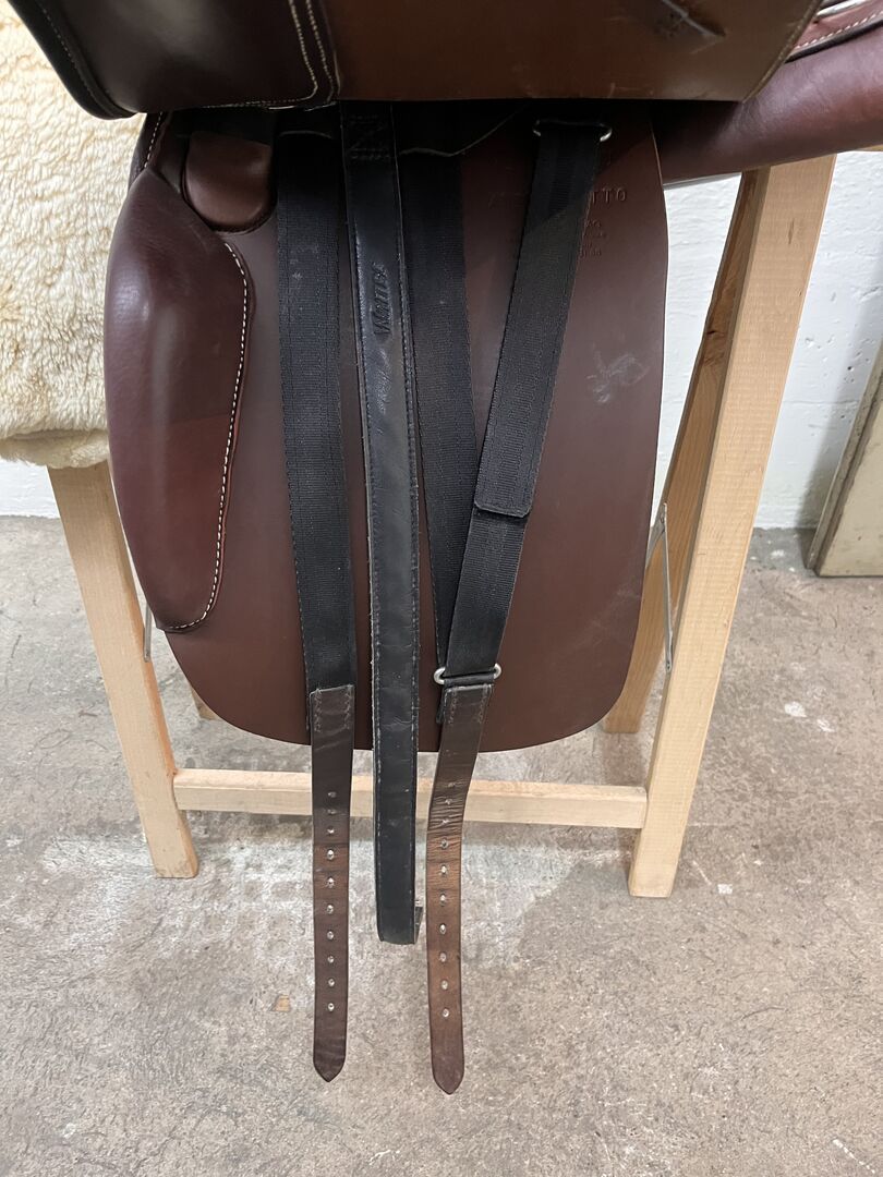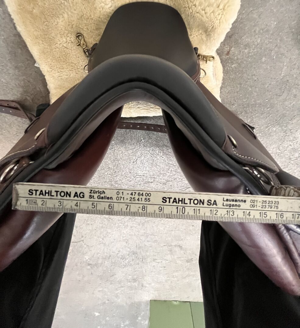 la belle dressage saddle for Icelanders - The saddle is in extremely good condition since rarely used (never in the rain) and always kept indoors (NP 4'500.-). It was made for an athletic Icelander with wide withers and straight back. Long saddle flap for long thighs! 17" seat extra slightly wider for ladies pelvis and very comfortable. Rather small pommels, not so deep seat to have enough space in tölt. Sits the rider nicely upright with lam leg. Will be given only against deposit of the selling price. Location:8580 Amriswil (Switzerland)