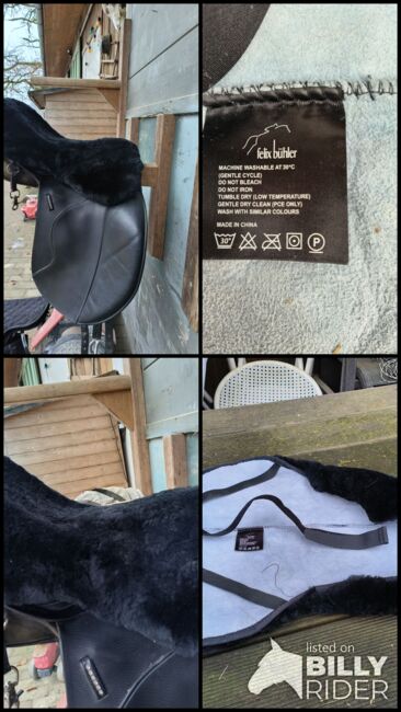 Lambskin seat warmer 16.5"-18" - New, never used lambskin seat warmer from Felix Bühler. Provides a soft and warm seat feeling. 100 % medical lambskin. With elastic band and fastening loops for a perfect fit. Suitable for saddles with seat size 16.5" - 18". Washable at 30 degrees wool care program. Only wash with lambskin detergent.