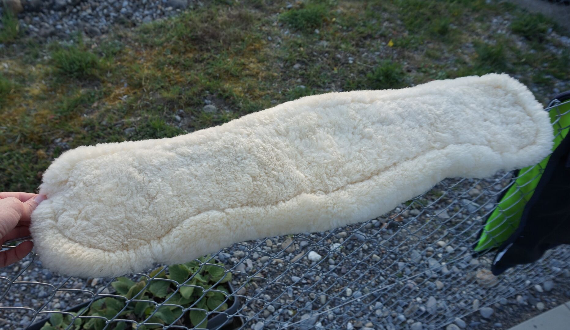 Lambskin short belts, 50cm - Little used and freshly washed with lambskin detergent short belts from Horze for sale. I like the girth, but because of saddle changes it is now too short. Without elastic, measures from buckle roll to buckle roll about 58cm. Guess they measured it because of the coat, it is quite thick, but I would have said it is rather an intermediate length between 50 and 55 cm.