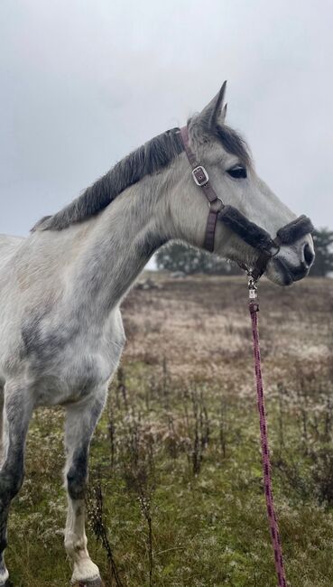 Georgi is a well-behaved, very people-oriented mare with a small handicap. She is 11 years old and about 1.70m tall. She is blind in her left eye. This is why she needs some time to build up trust with new people - but once she has gained this trust, she goes through thick and thin with her caregiver. She was broken in at the age of four and unfortunately spent several years with her previous owner. In the fall of 2025, she was to be started again and was ridden a few times, mainly alone in the field. She proved to be courageous, well-behaved and with a good but always manageable go.